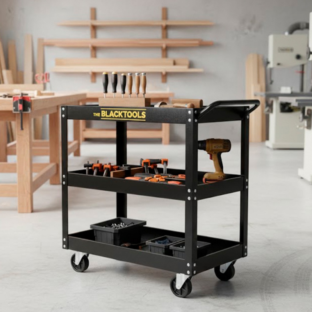 Organizador Móvel Com 3 Prateleiras Carrinho De Ferramentas Aberto Mecânico 120kg The Black Tools