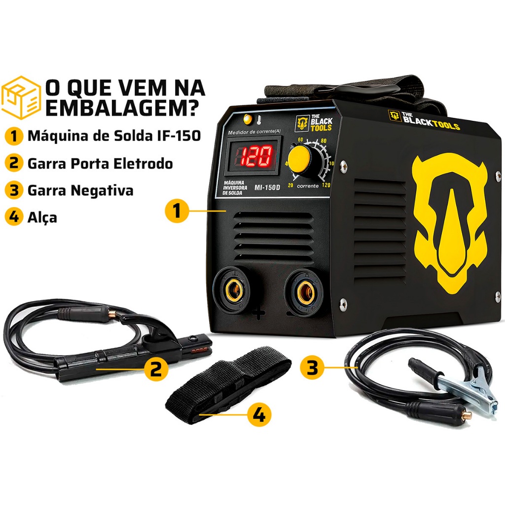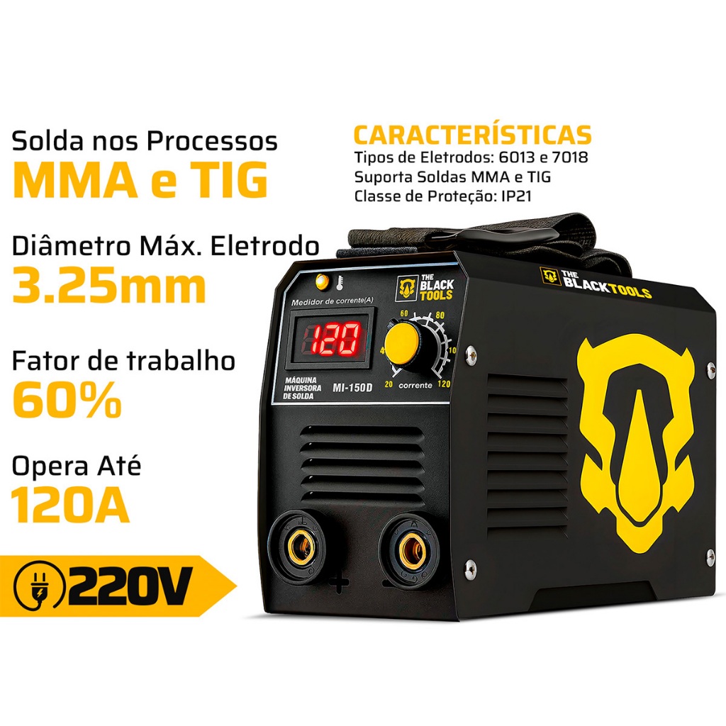 Maquina Inversora De Solda Mma Eletrodo Tig 120a 220v Com Máscara De Solda + Acessórios The Black Tools
