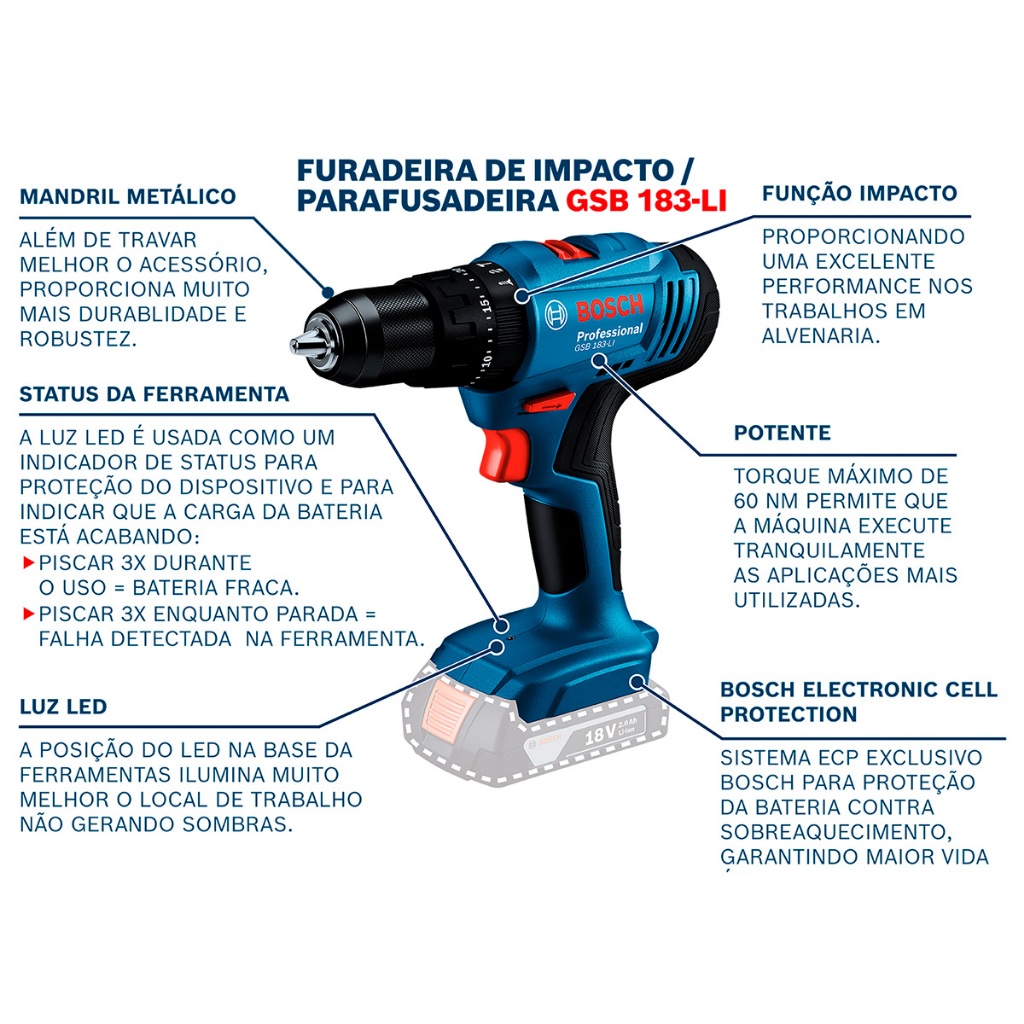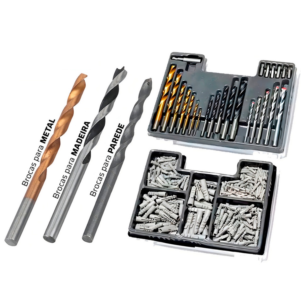 Parafusadeira Furadeira De Impacto Bosch A Bateria 18v Maleta Com Kit Brocas Buchas E Bits 300 Peças
