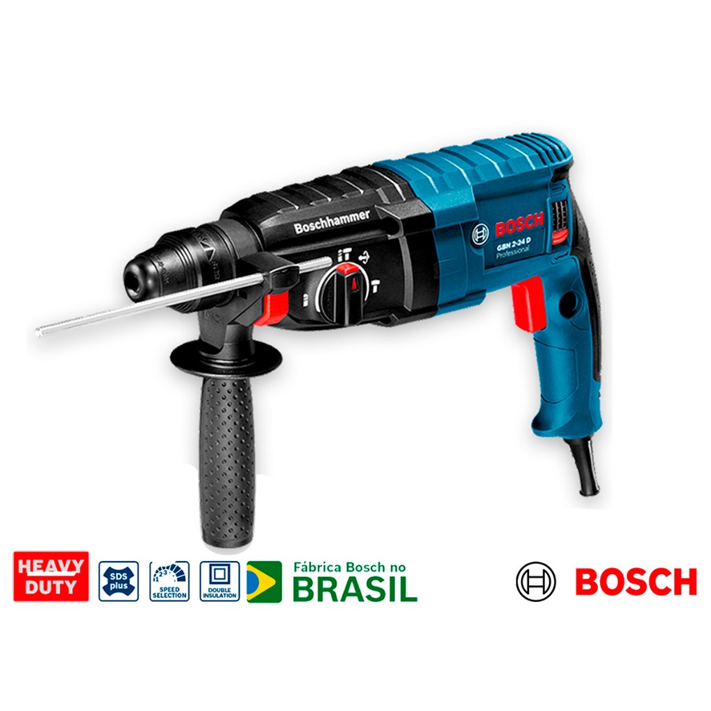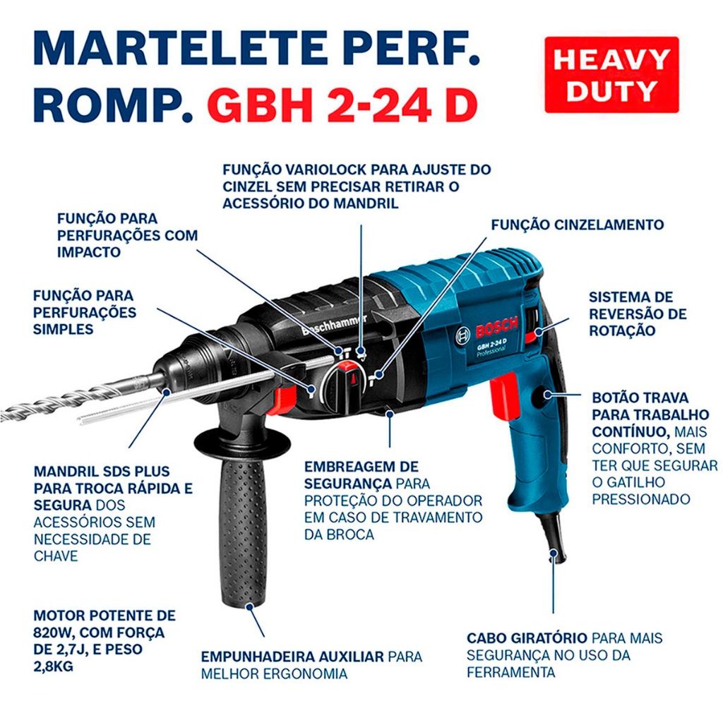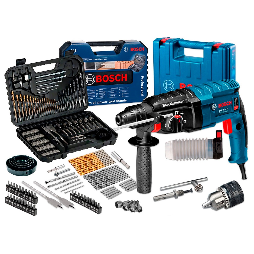 Martelete Rompedor Bosch Gbh 2-24d 820w 127v E Mandril Adaptador SDSPLUS + Kit 103 Peças Ferramentas