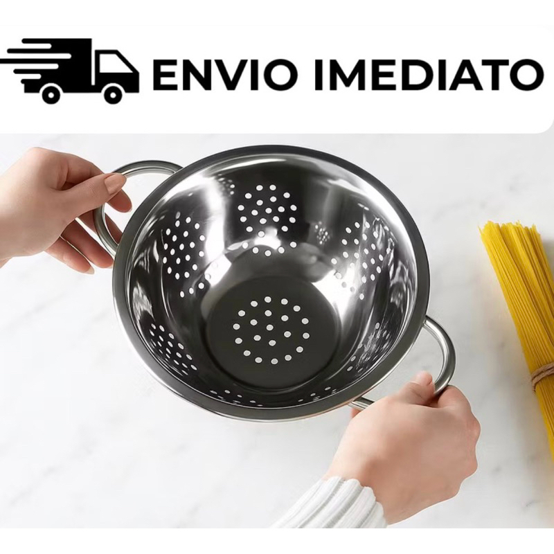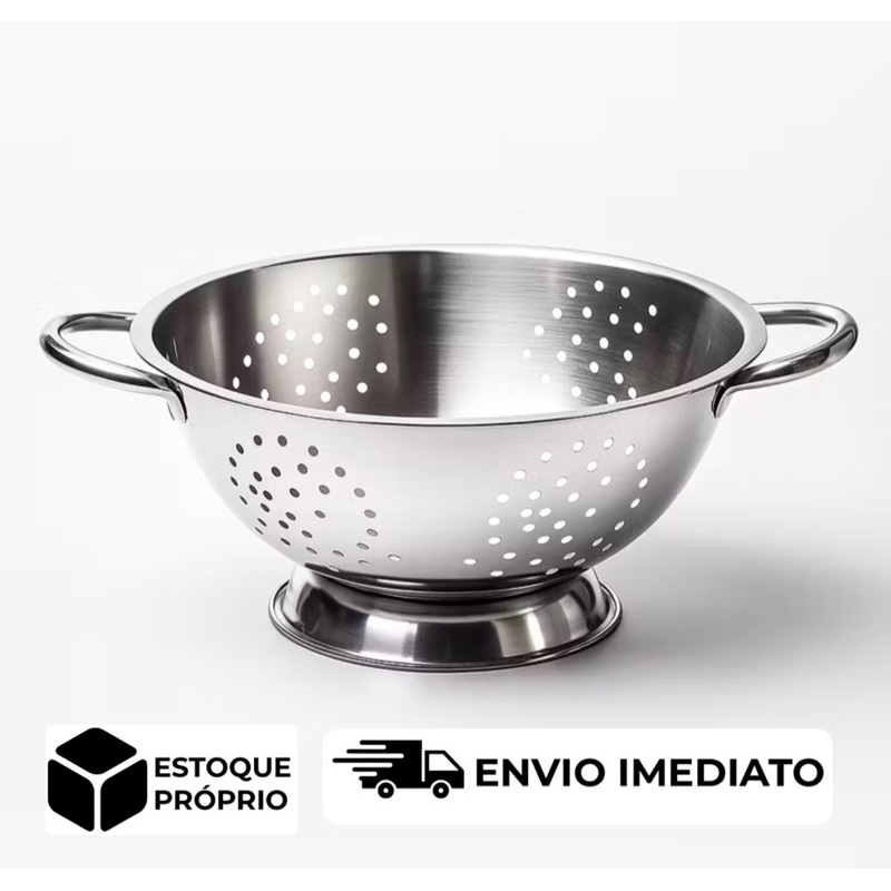 Escorredor de Macarrao Massas Aço Inoxidável Reforçado Pé Alça Inox 24 cm Macarrão Legumes Verduras