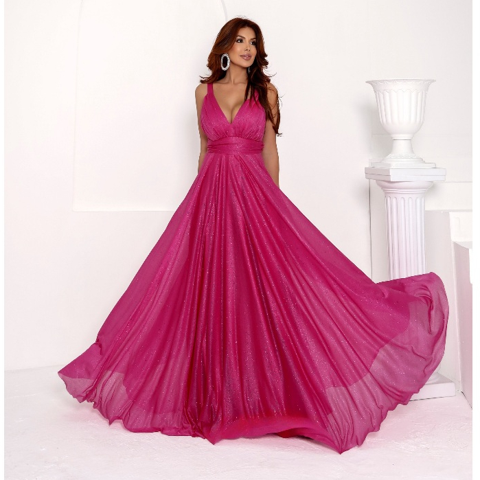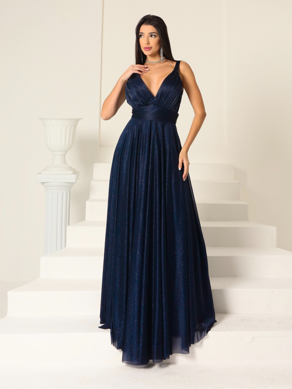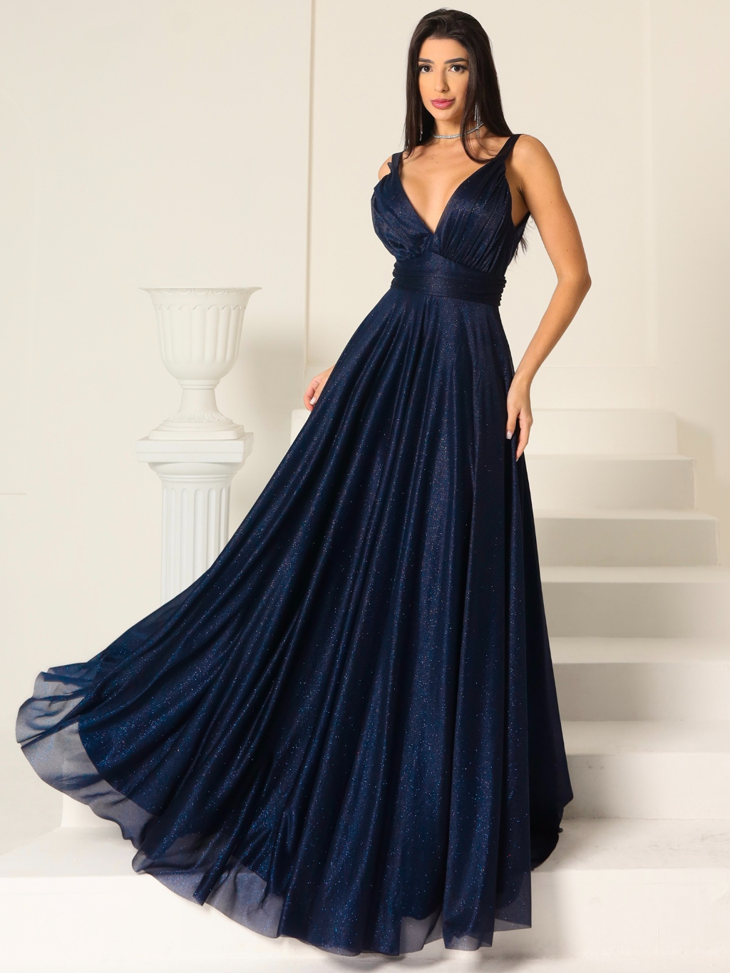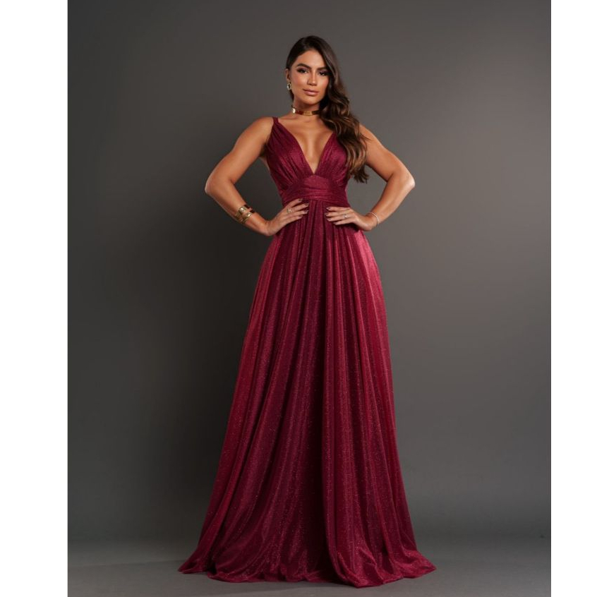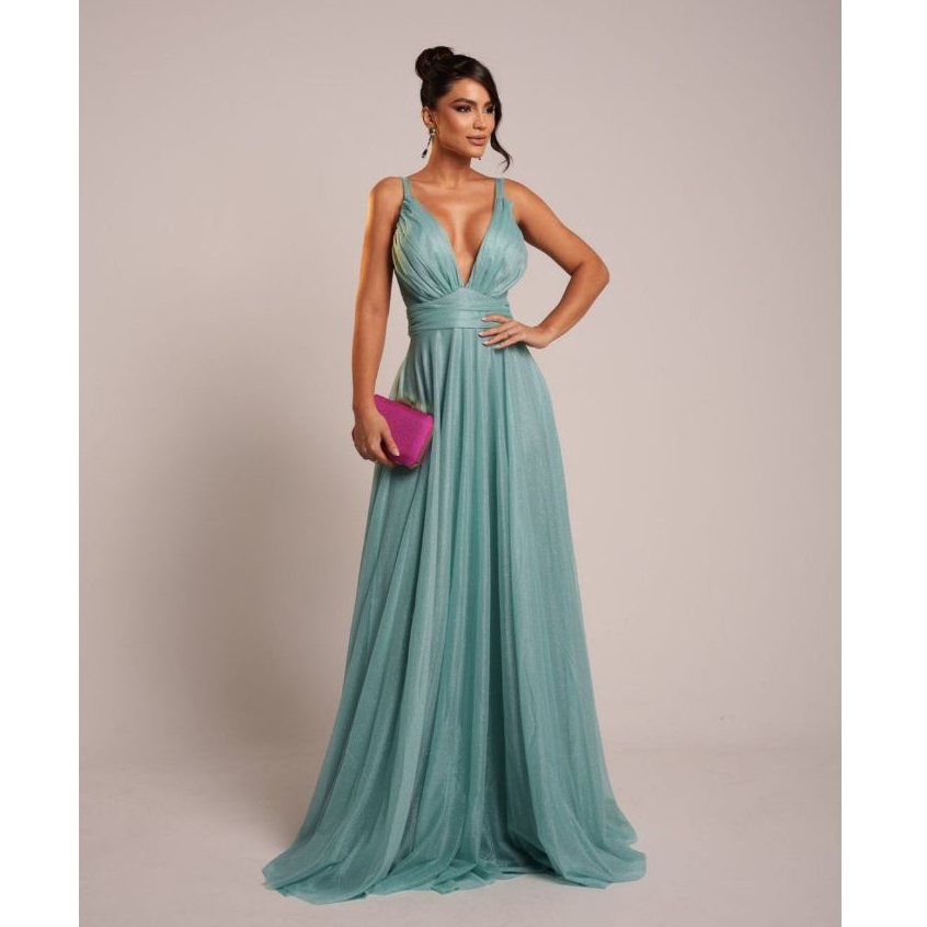 vestido longo de festa madrinha malha Tulí com brilho em V com bojo e Zíper festa formal ,casamento
