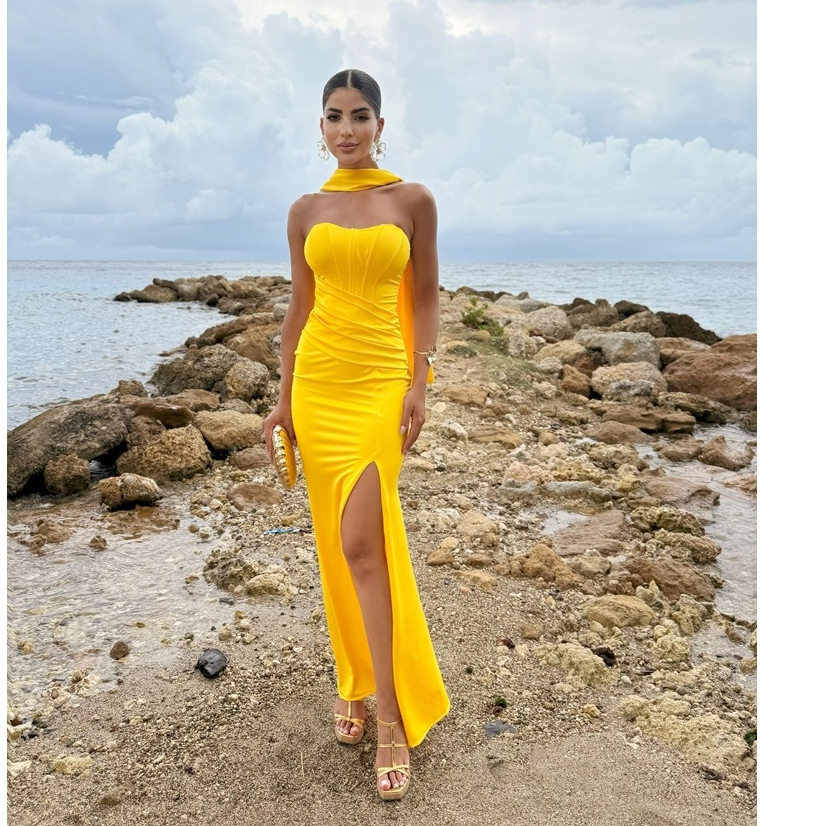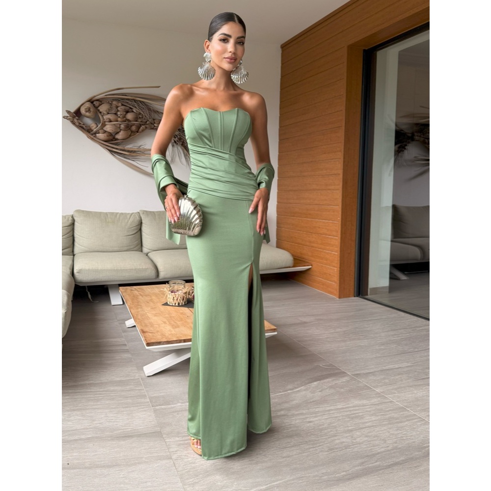 Vestido longo tomara que caia malha trilobal elegante festa casamento convidada madrinha formatura