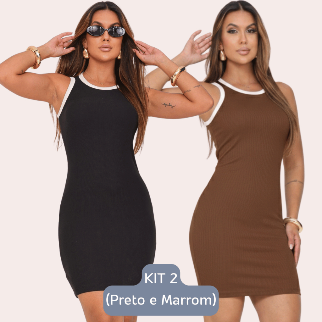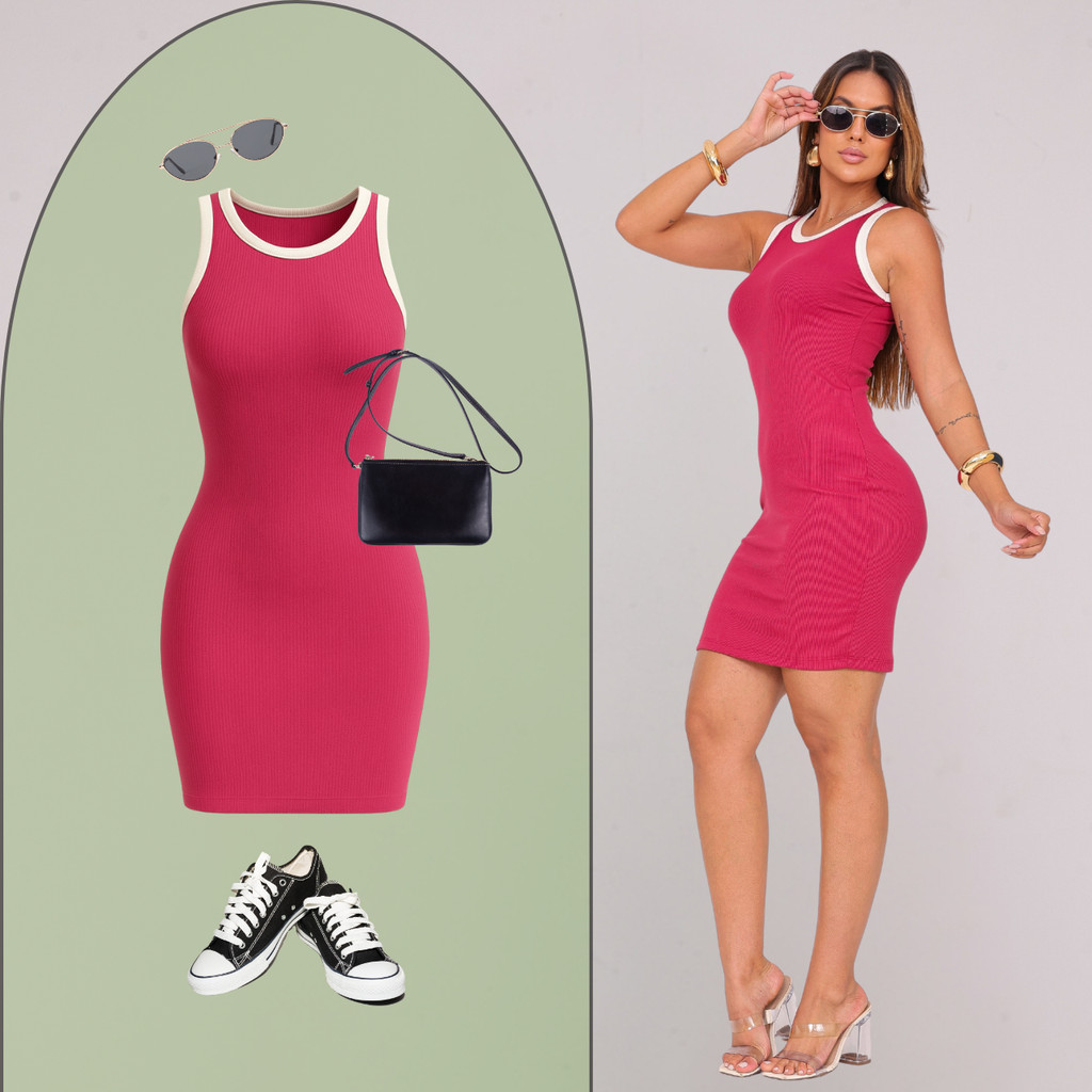 Vestido Tubinho Colado Feminino Bicolor Regata Cavado Canelado Premium Moda Casual Elegante
