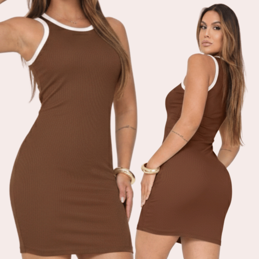 Vestido Tubinho Curto Regata Canelado Premium Bicolor Moda Casual Elegante Verão