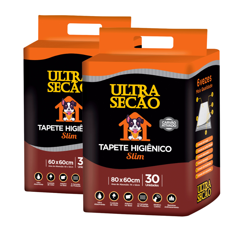 KIT 2 Tapetes Higiênicos 80x60 60 unidades Ultra Secão Carvão Ativado para Cães e Gatos Pets Grande