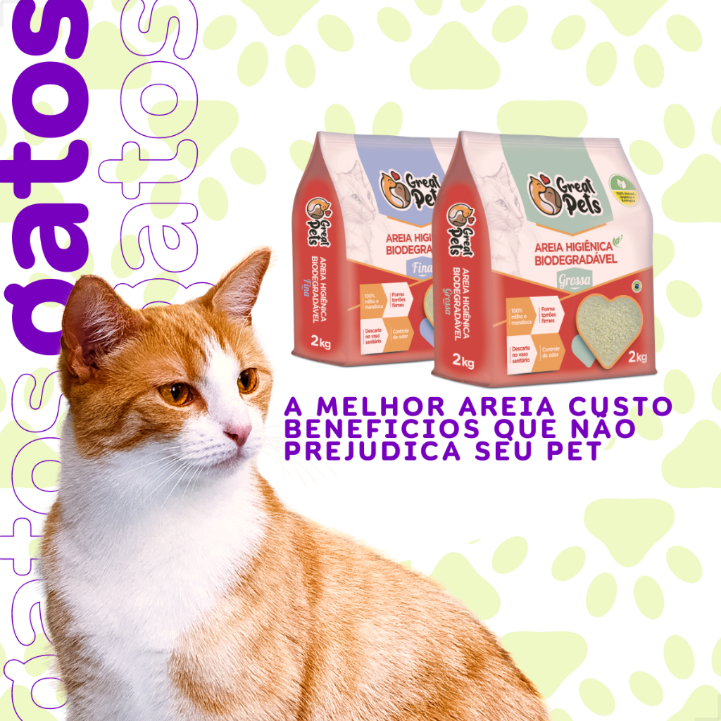 KIT 5 Areias Para Gatos Biodegradavel Mandioca Milho Fina Grossa 10kg - Great Pets