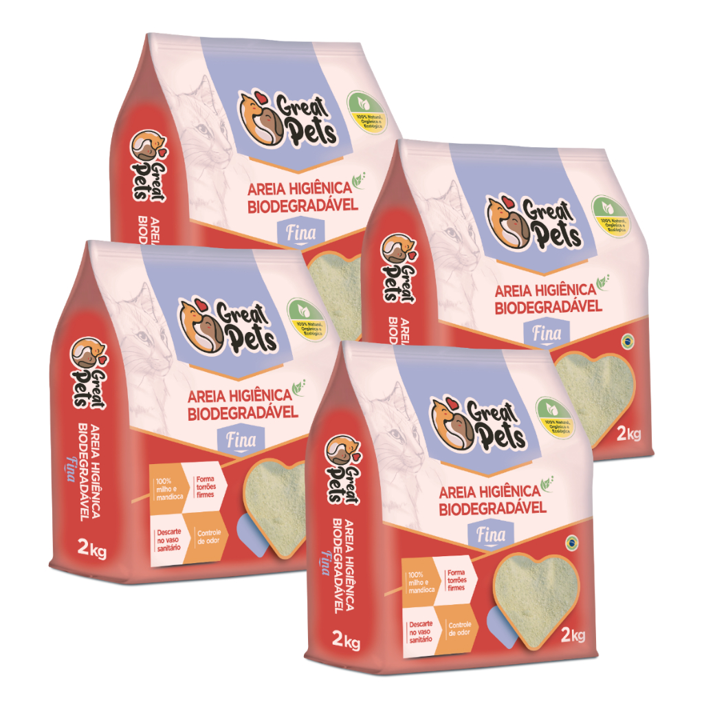 KIT 4 Areias Para Gatos Biodegradavel Mandioca Milho Fina Grossa 8kg - Great Pets