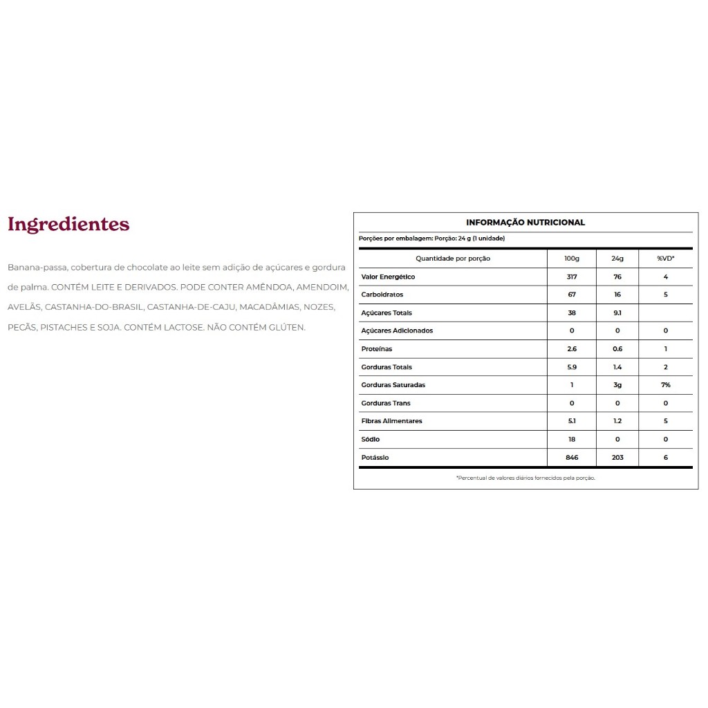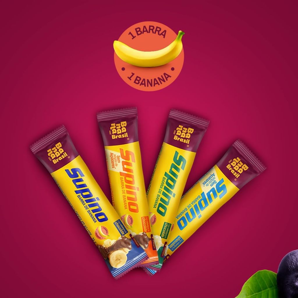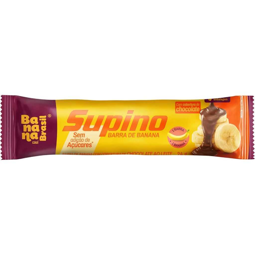 Barra De Frutas Supino Zero Banana Com Cobertura Chocolate Ao Leite Com 20 Unidades de 24g Banana Brasil