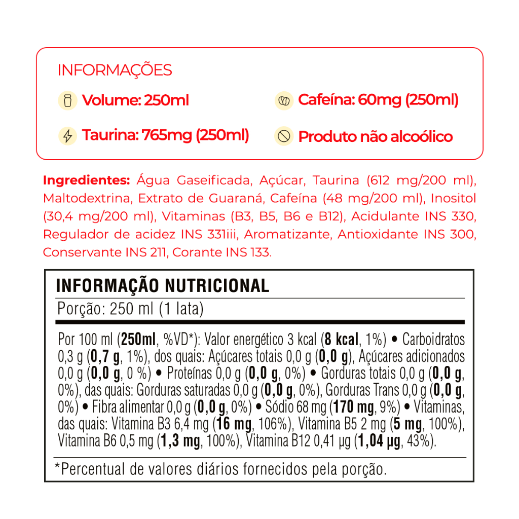 Pack Energético Baly Energy Drink Cereja Sem Açucar 250ml