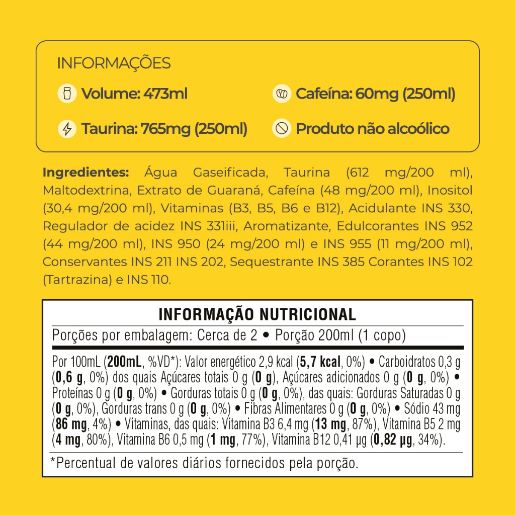 Pack Energético Baly Energy Drink Tropical Sem Açucar 473ml