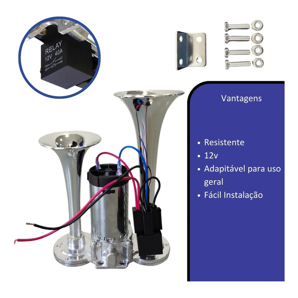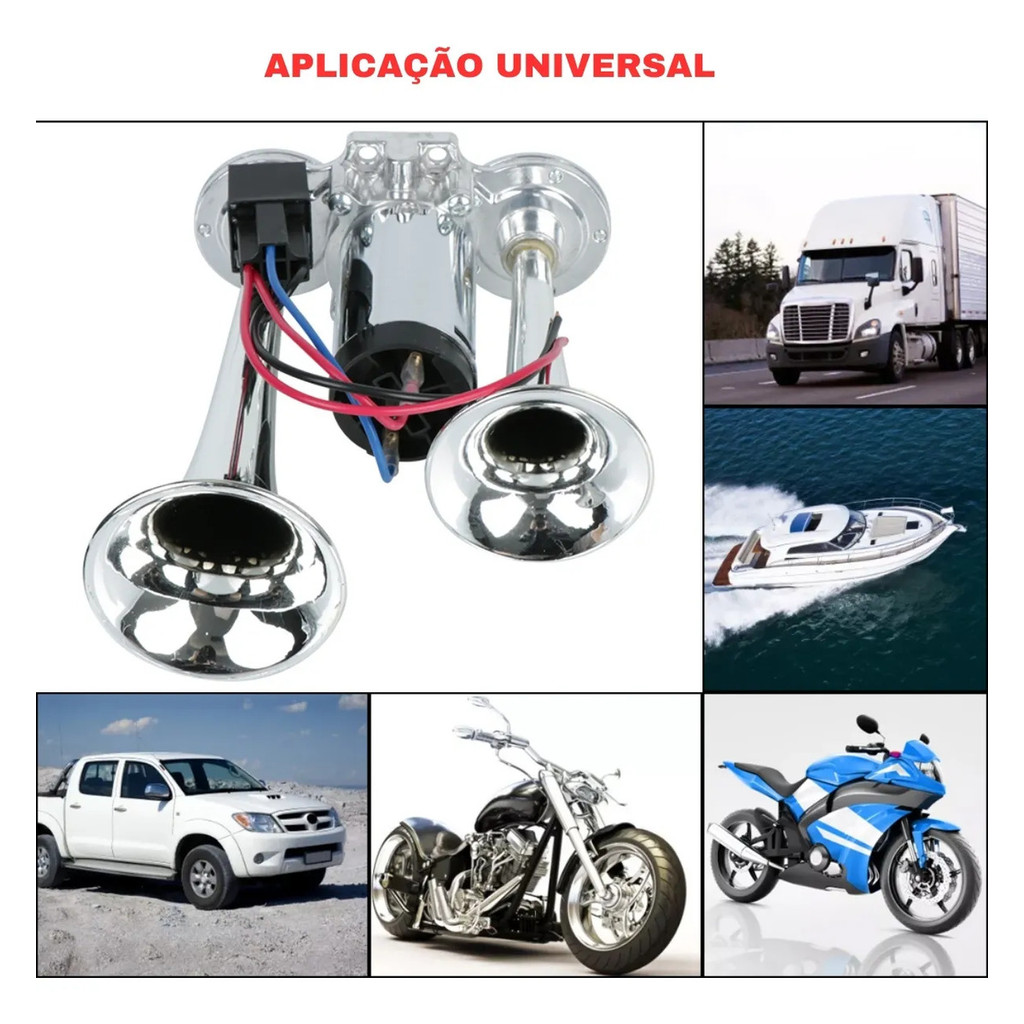 Buzina 12v Com Compressor 2 Cornetas Caminhão Trem Com Rele