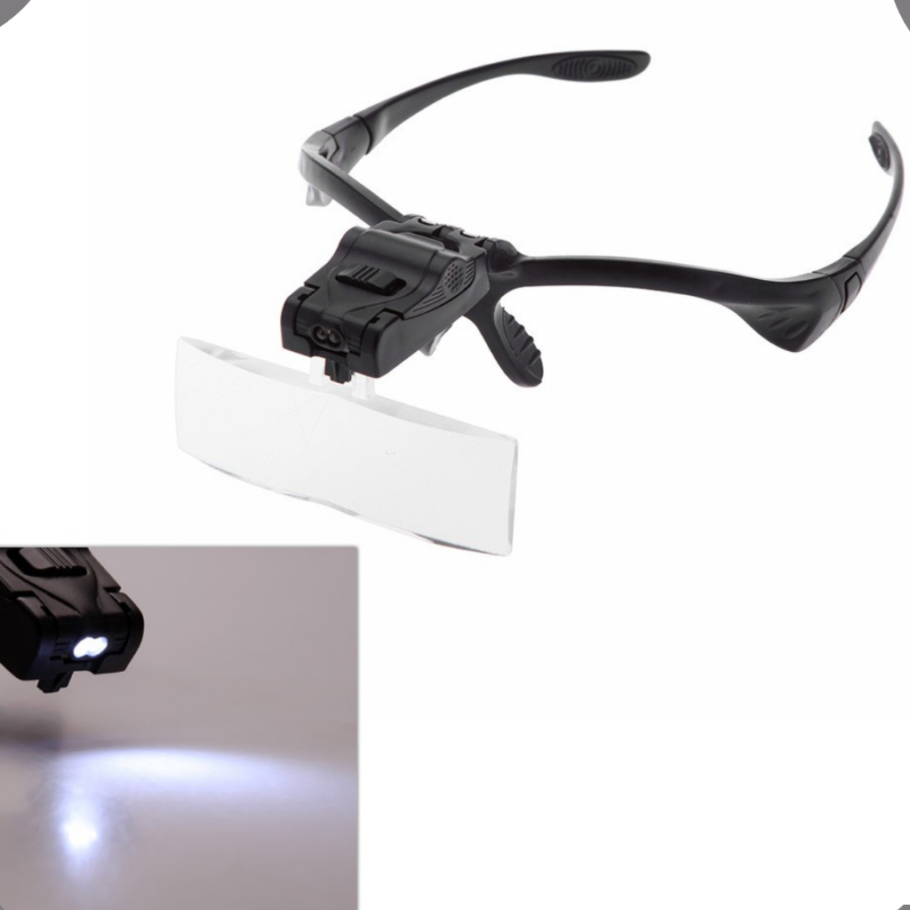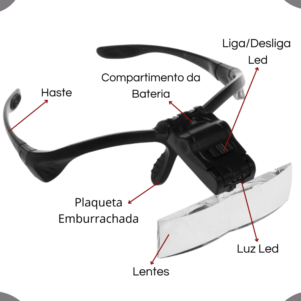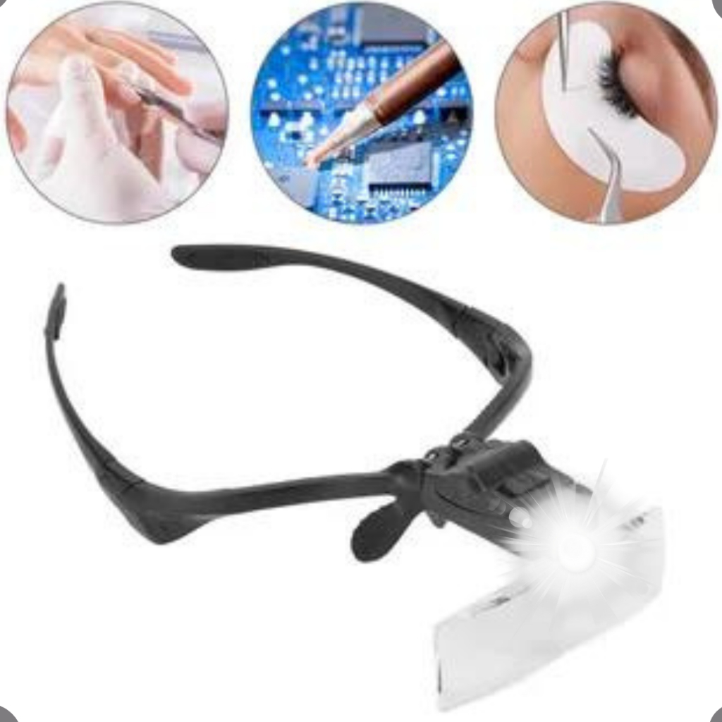 Óculos Lupa com LED 5 Lentes de Aumento Profissional Estética Cílios