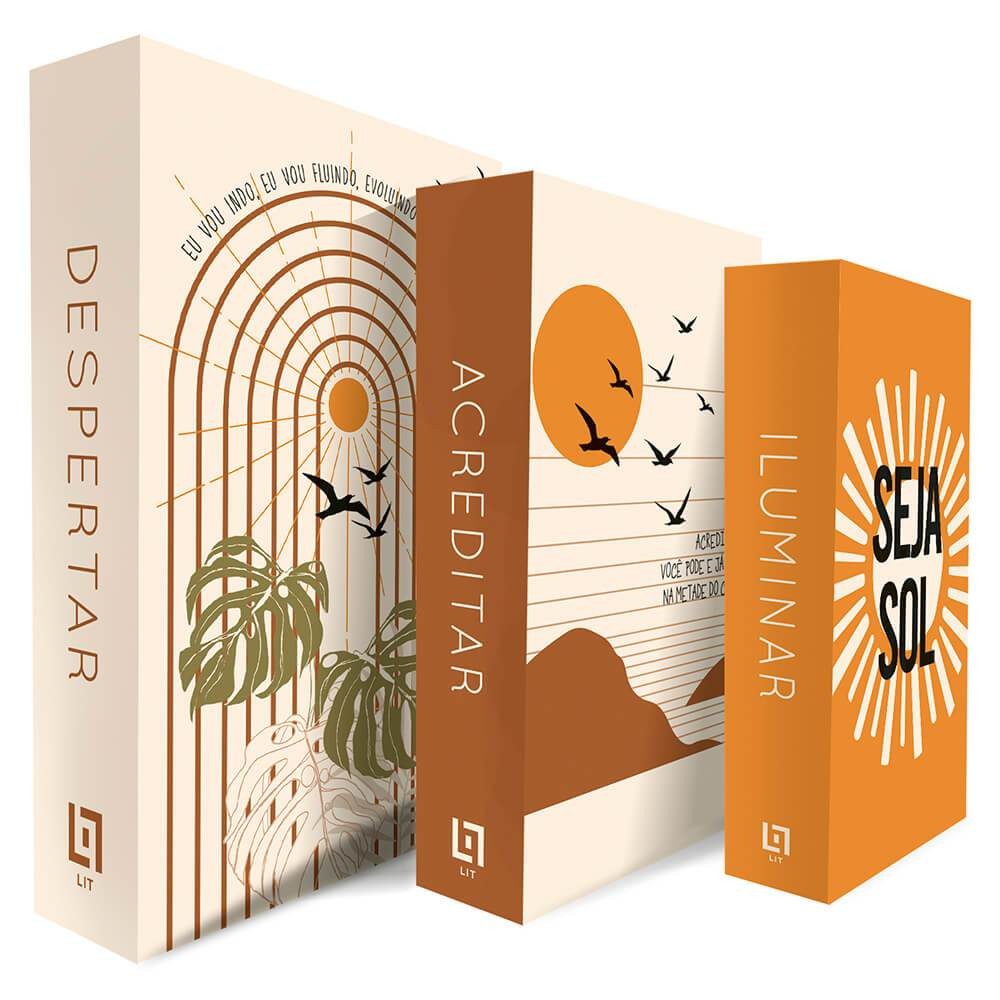 Caixa Livro Falso Decorativo - Kit 3 Porta Objetos- Boho