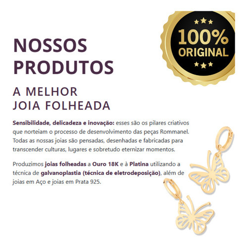 Brinco Rommanel Meia Argola Banhado A Ouro 18k
