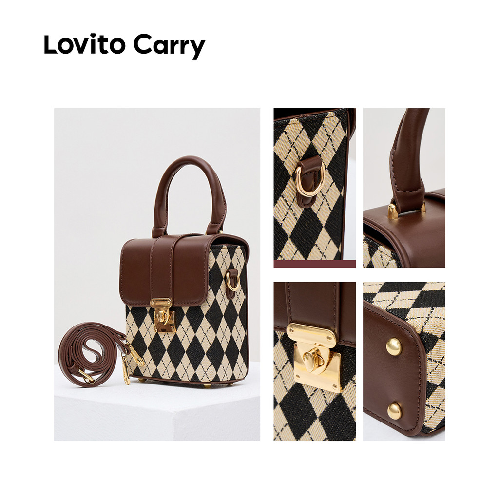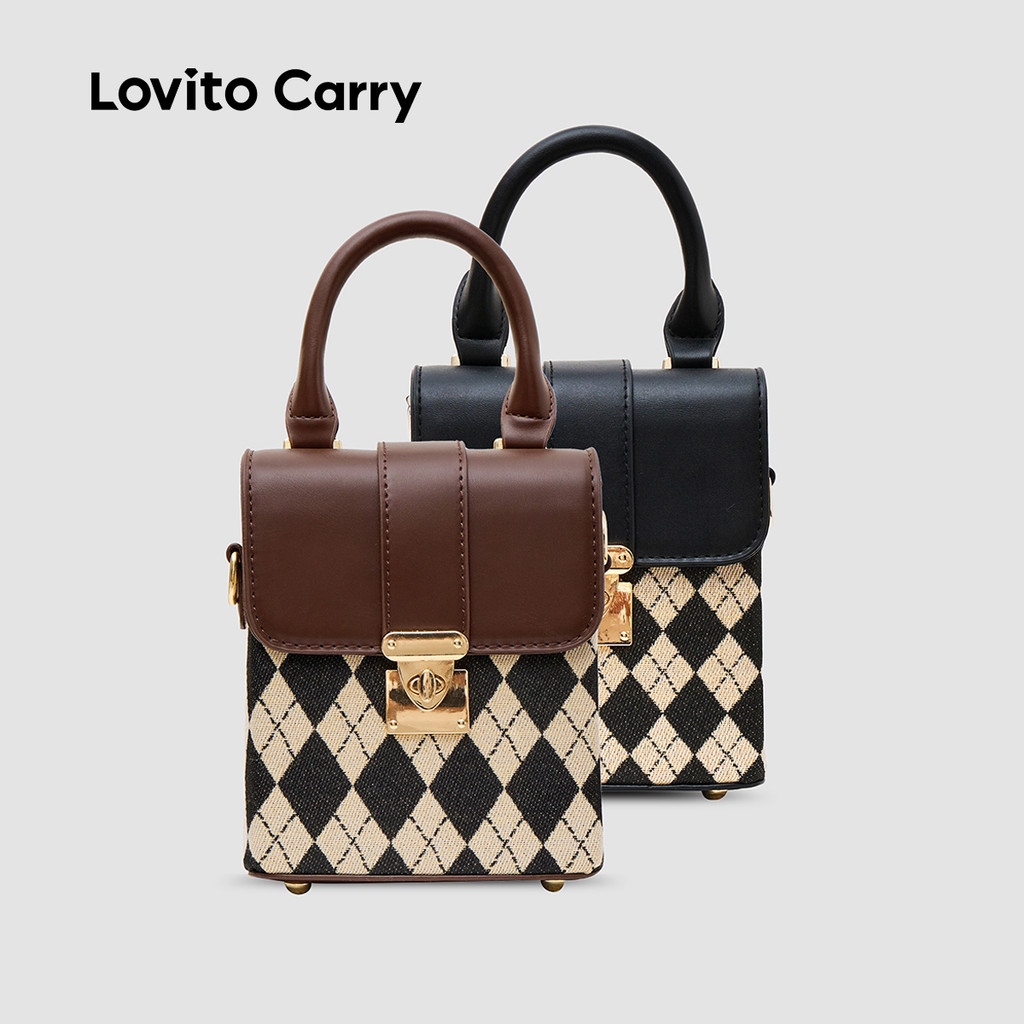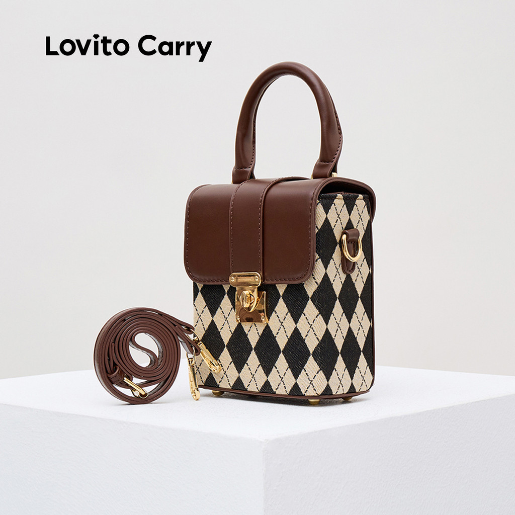 (Lovito Carry) Bolsa de Ombro Pequena Casual com Padrão Argyle LFA57116