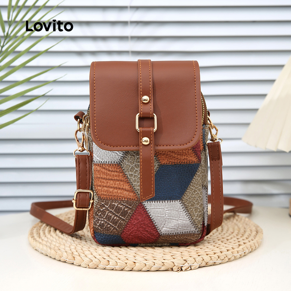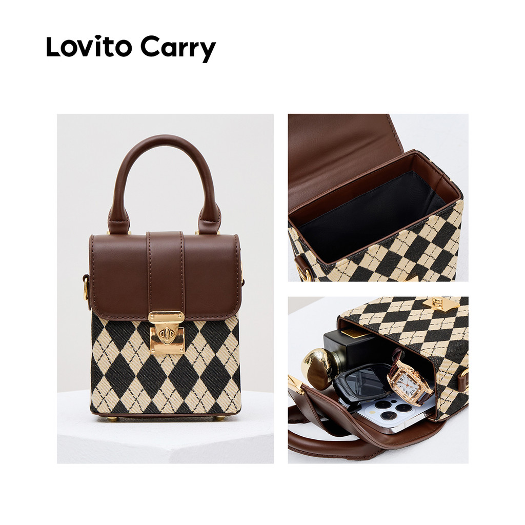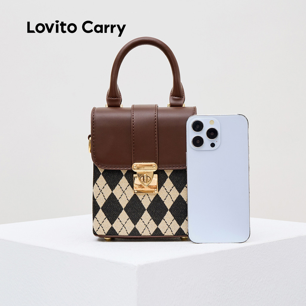 (Lovito Carry) Bolsa de Ombro Pequena Casual com Padrão Argyle LFA57116