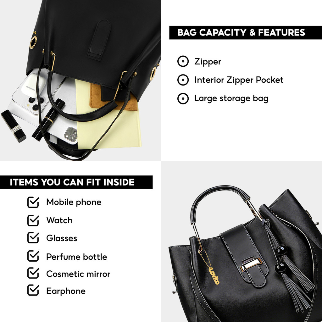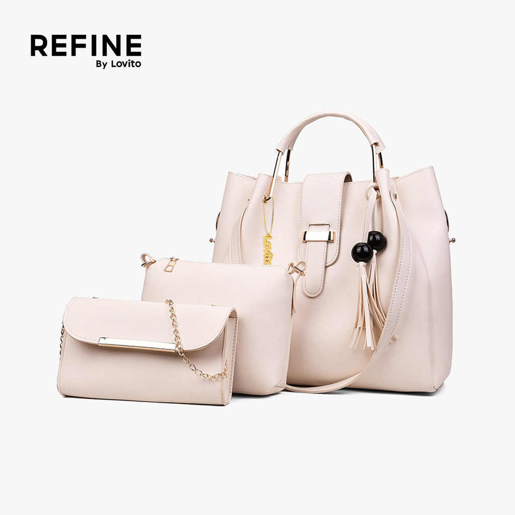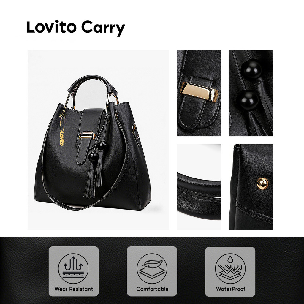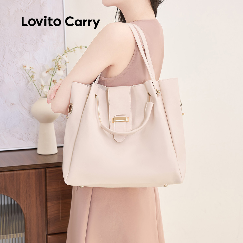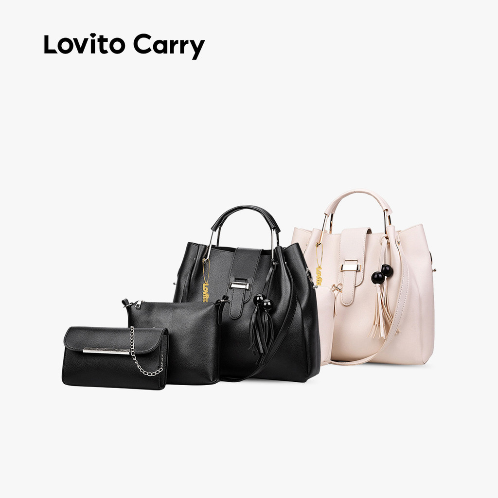 (Lovito Carry) Conjunto Feminino Casual Com 3 Peças: Bolsa De Mão Bolsa De Ombro E Carteira LR30E058
