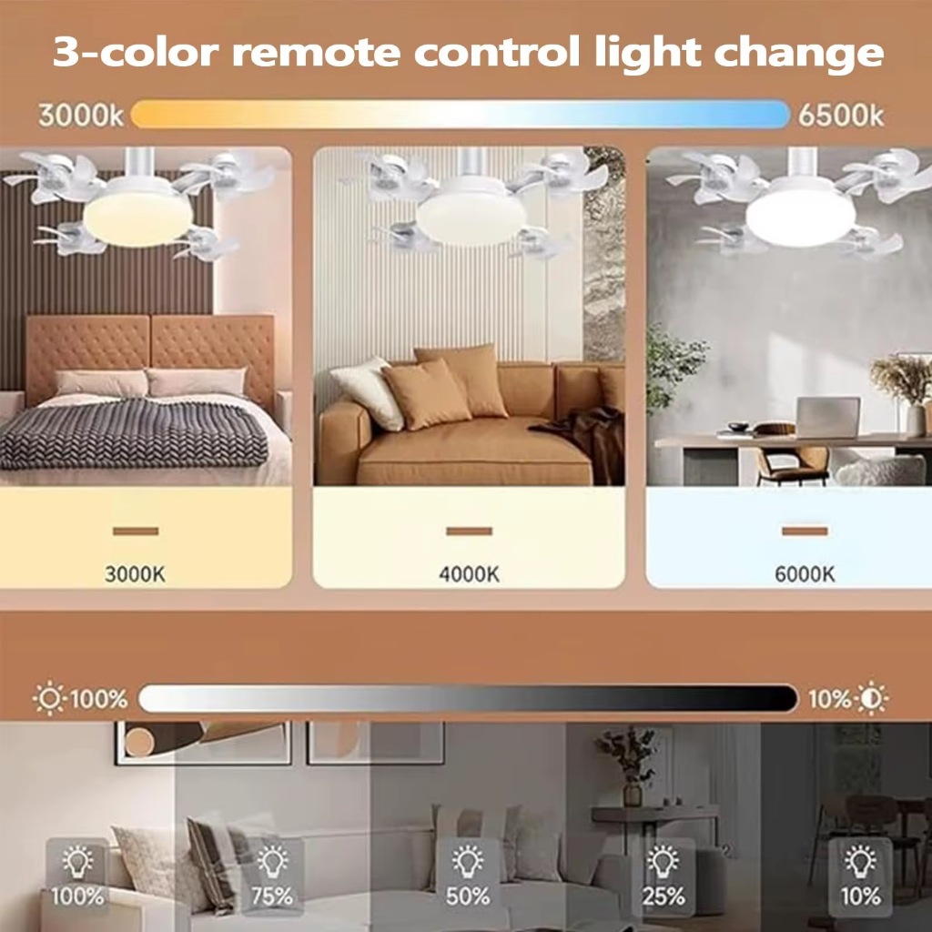 Ventilador de Teto Dobrável LED 50W/60W com Controle Remoto Ajuste de intensidade 3 cores e operação silenciosa Bivolt