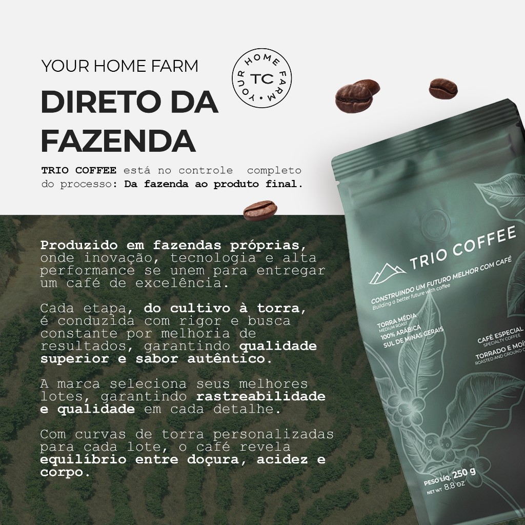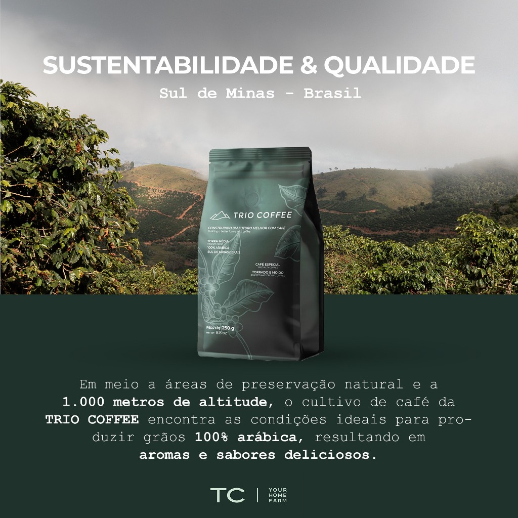 Trio Coffee Café Especial Moído 250 g | 100% Arábica | Torra Média | Direto da Fazenda