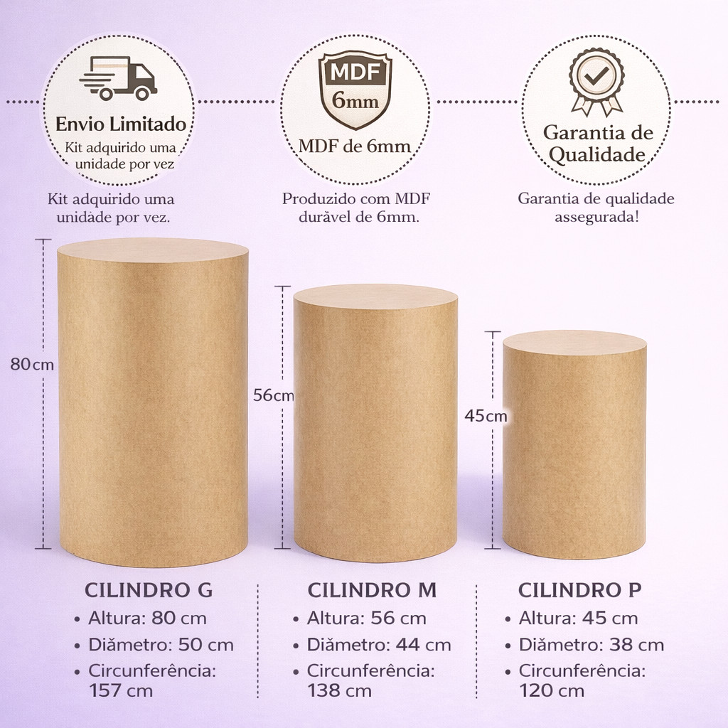 trio de cilindros liso cru em mdf pegue e monte festas eventos