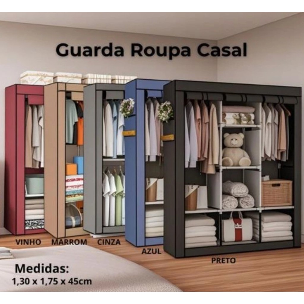 Arara Guarda Roupa Dobrável Armário Organizador Multiuso Roupeiro Cabideiro Sapateira a