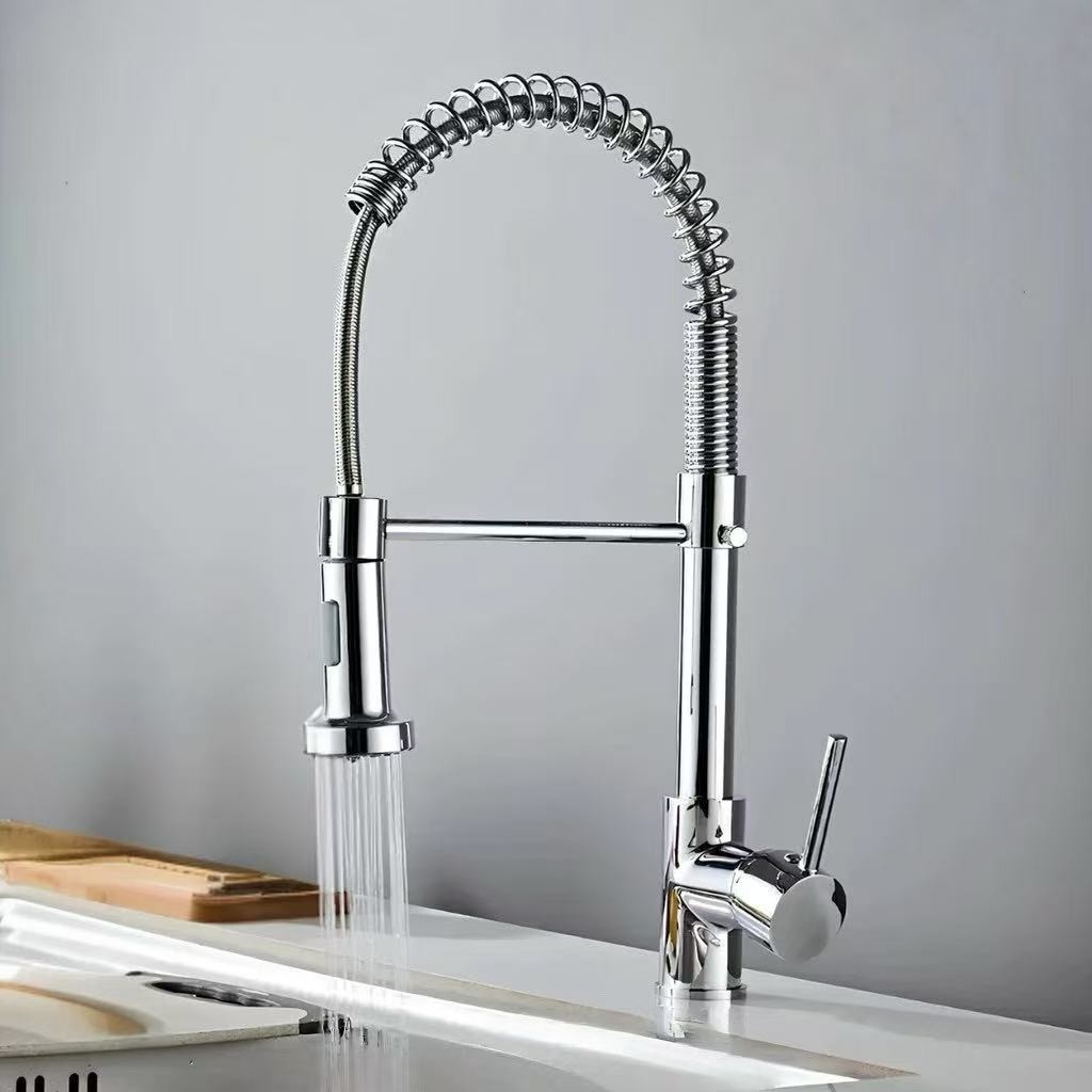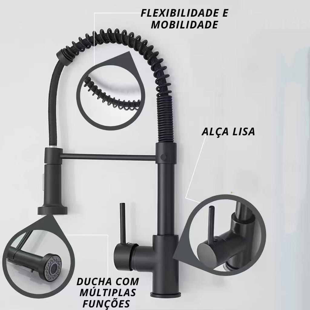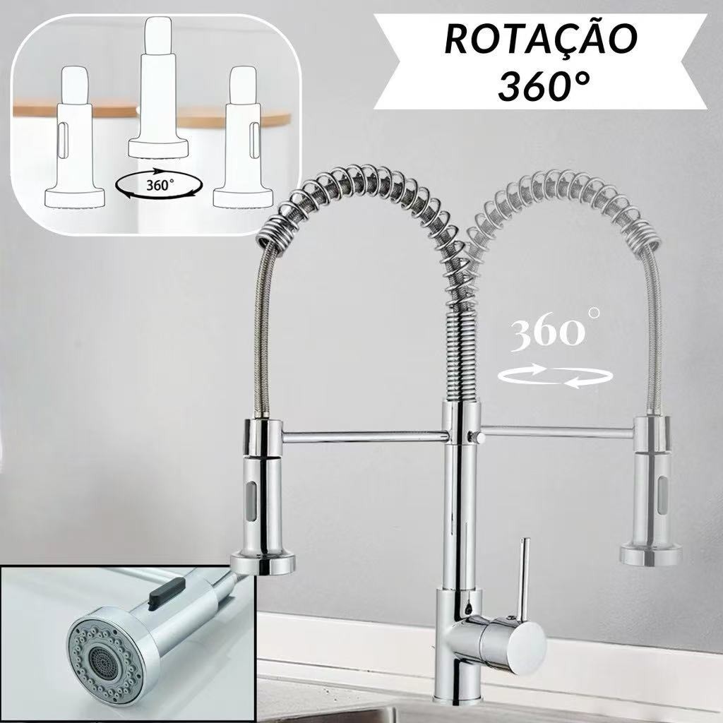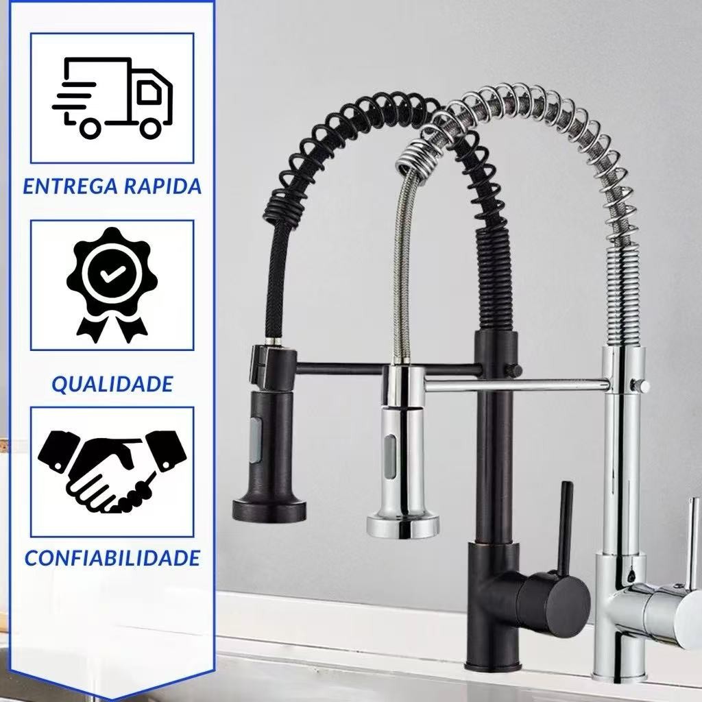 Torneira De Cozinha Gourmet Alça Única Com Extensor De Spray Tubo De Água Flexíve al Superior Prateado Para Ajuste