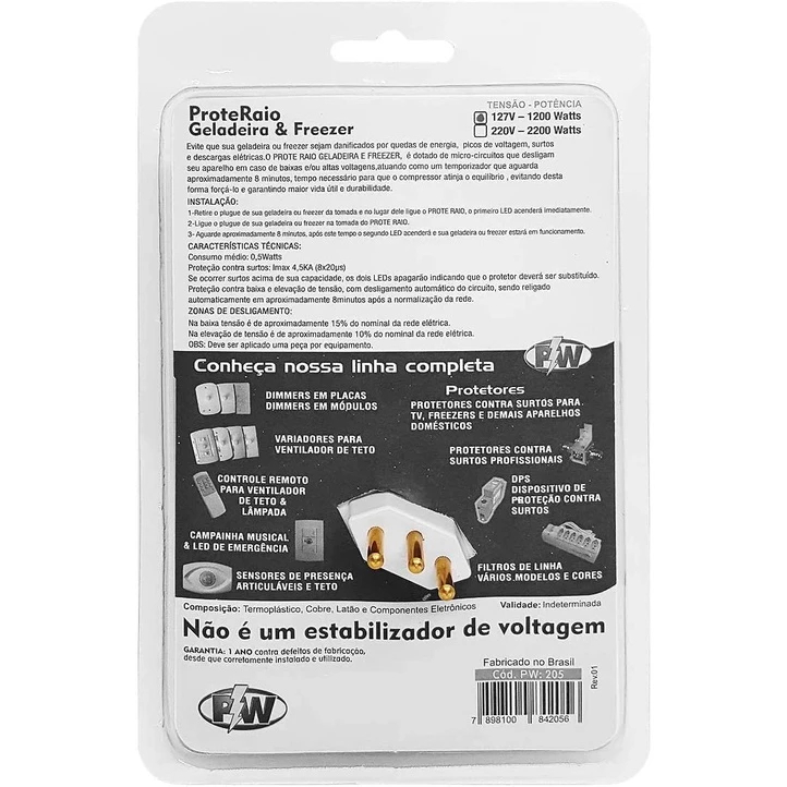 Protetor contra Raios Surtos Queda de energia ProteRaio Geladeira e Freezer