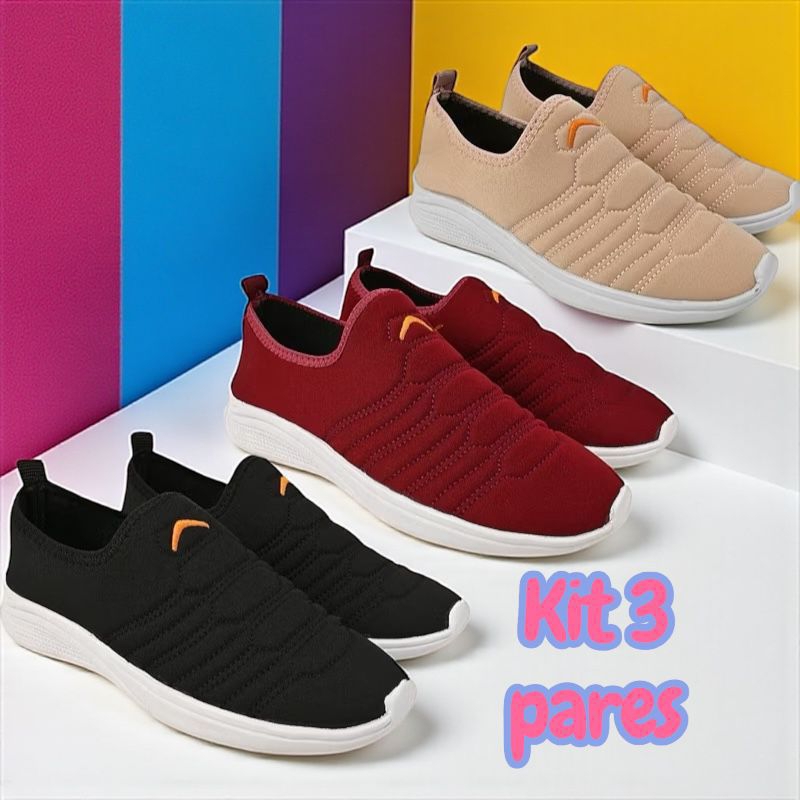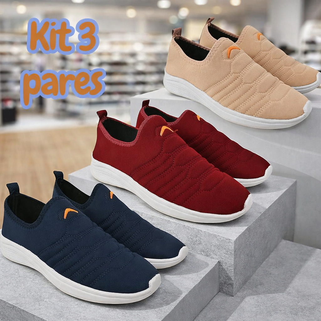 Kit 3 Pares Tênis Calce Fácil Adulto Feminino Unissex