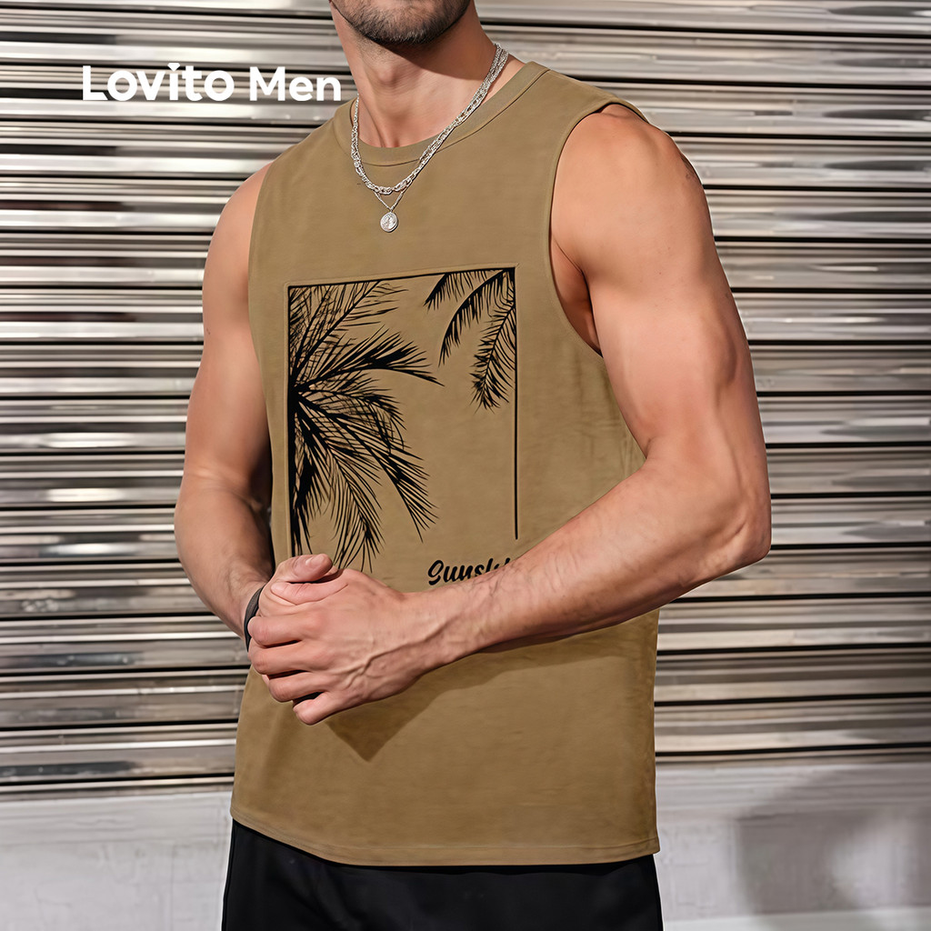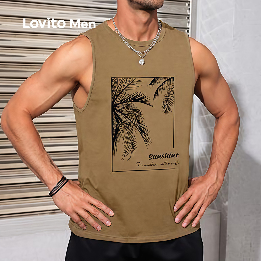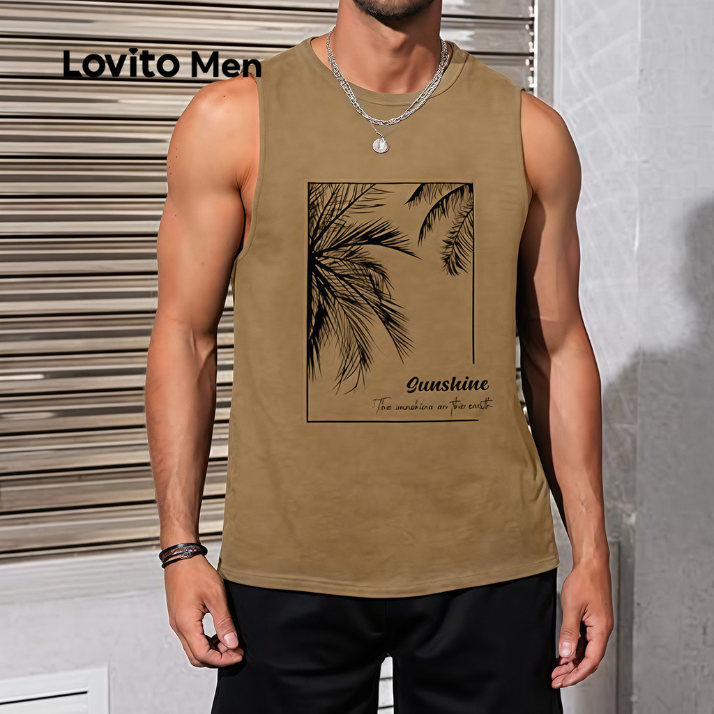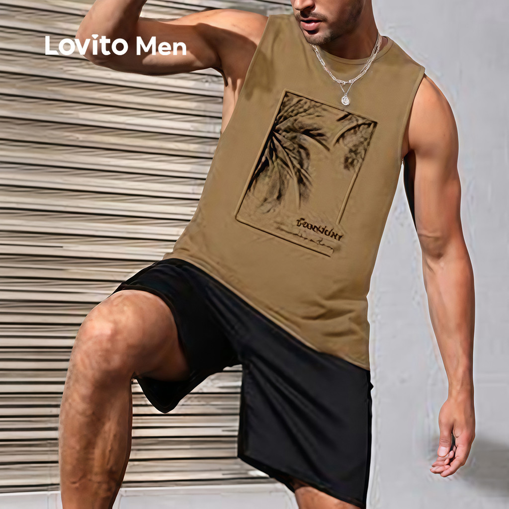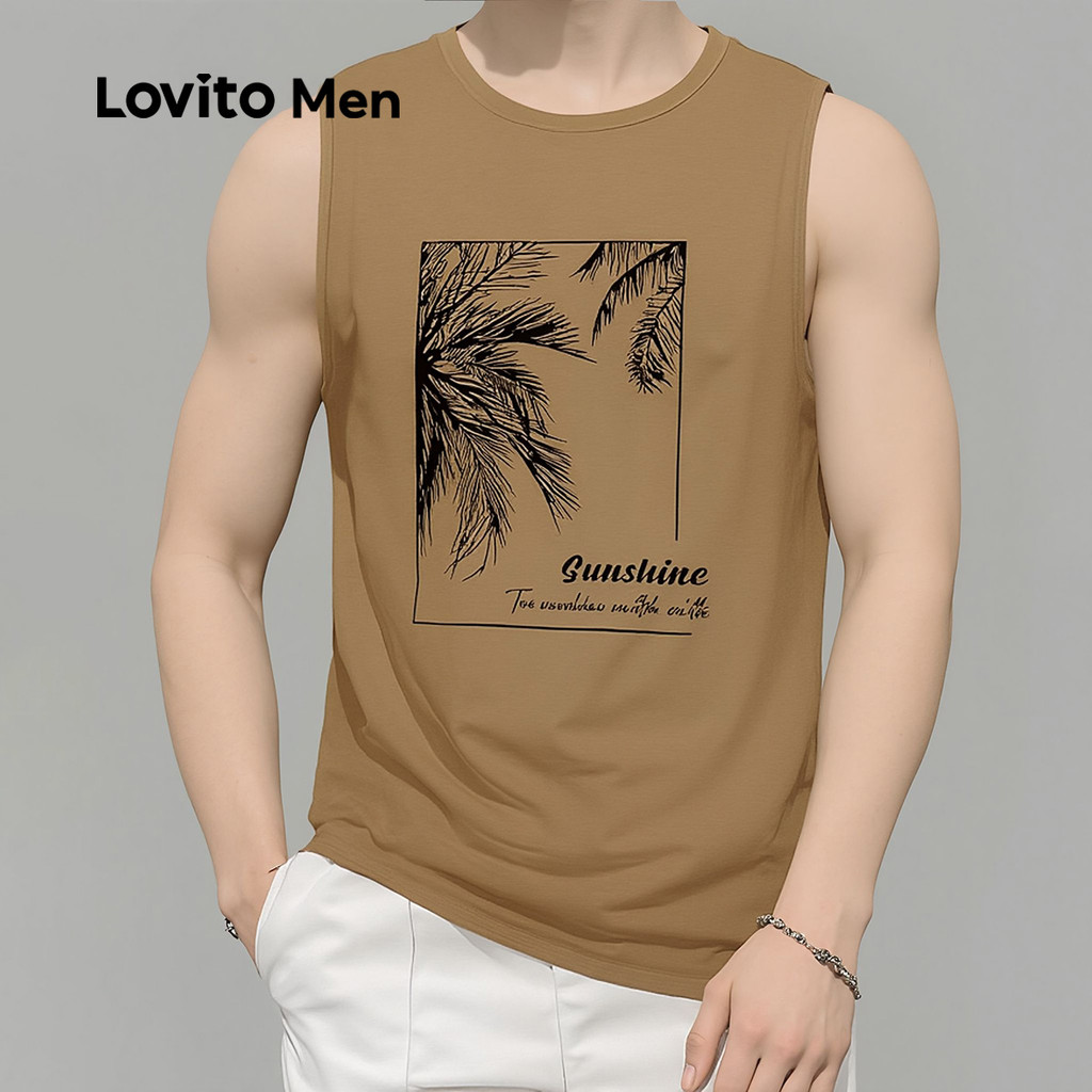 Lovito Men Regata Casual para Primavera/verão Regata Marrom para Homens LNE118061