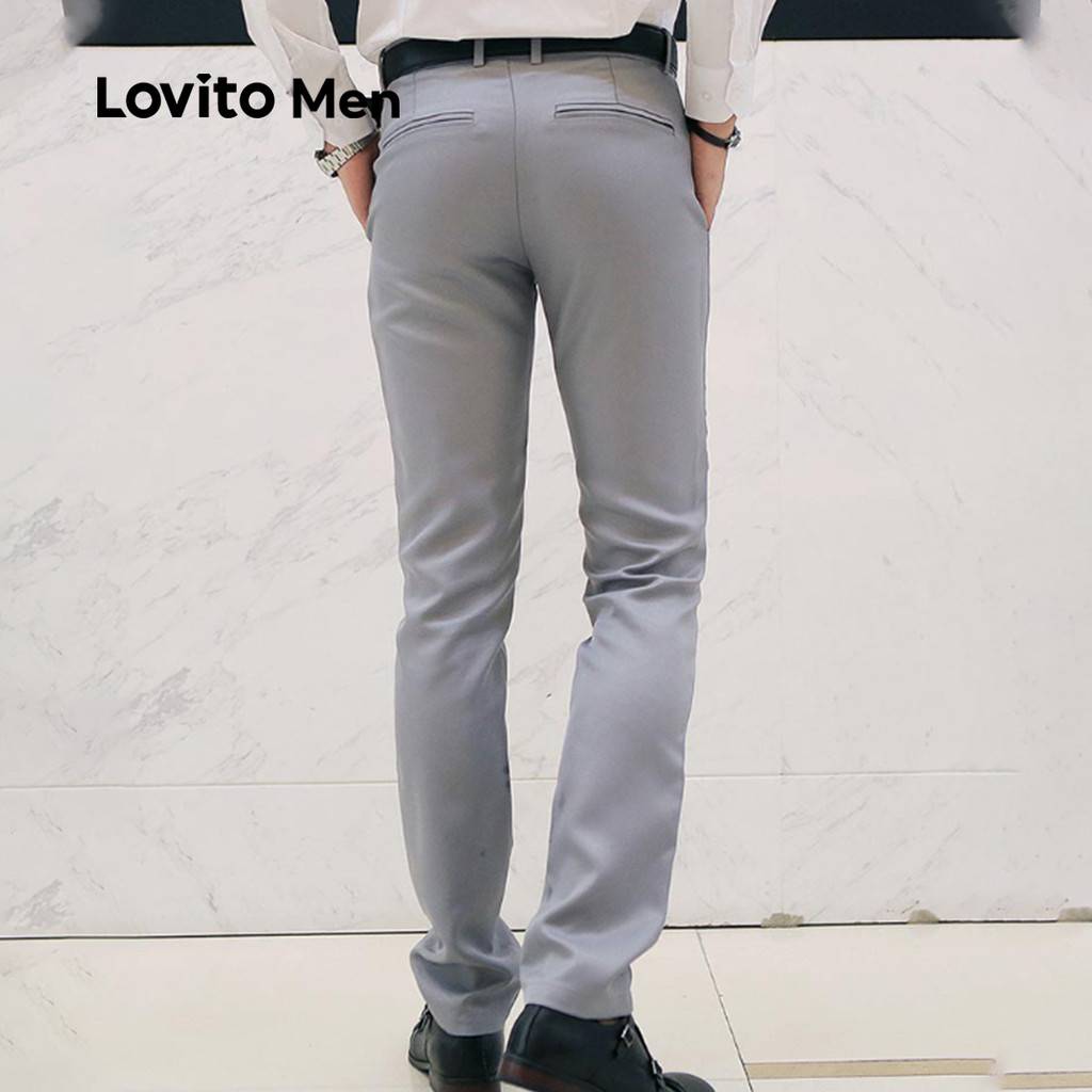 Lovito Men Calças de Terno Casuais com Botões No Bolso Todas As Estações Cinza para homens LNE122074