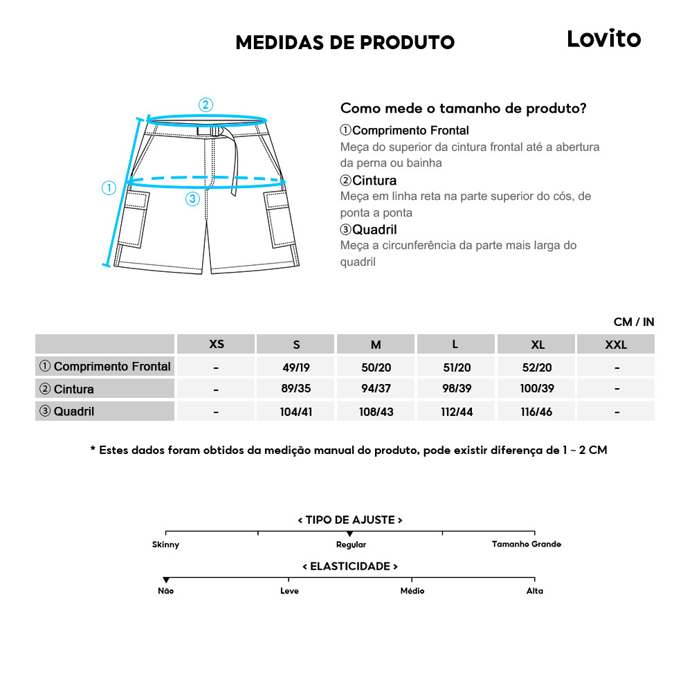 Lovito Shorts Casuais com Bolso para Todas As Estações Shorts Cáqui para Homens LNE110109