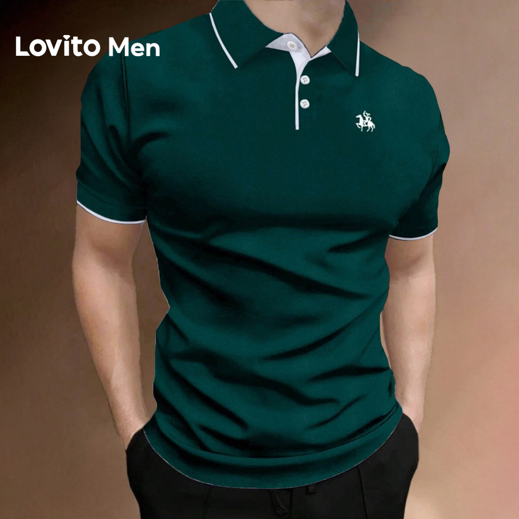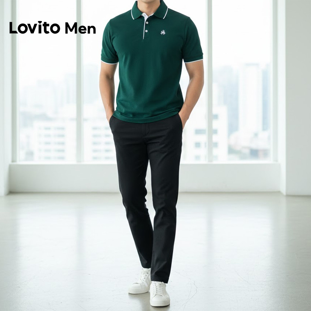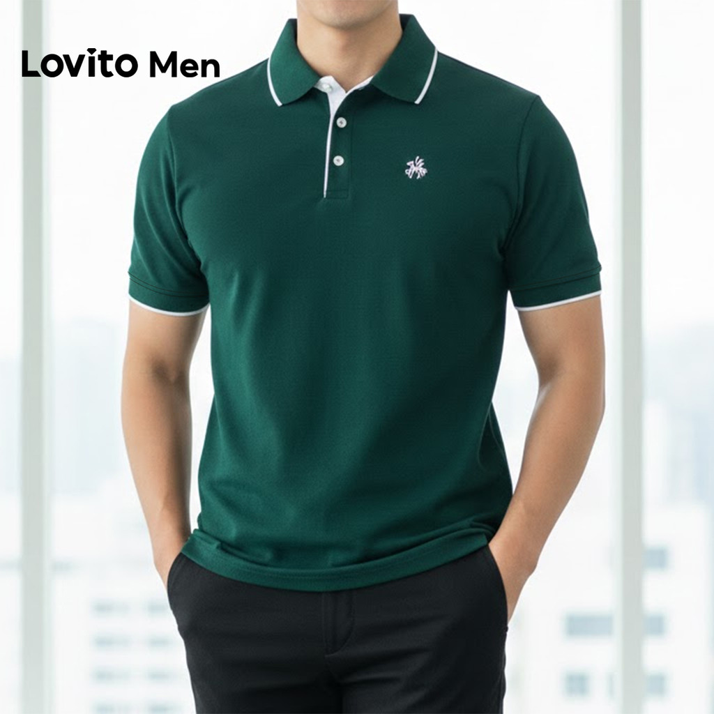 Lovito Men Camisa Polo Casual com Acabamento Contrastado Primavera/verão Camisa Polo Branca para Homens LNE131070