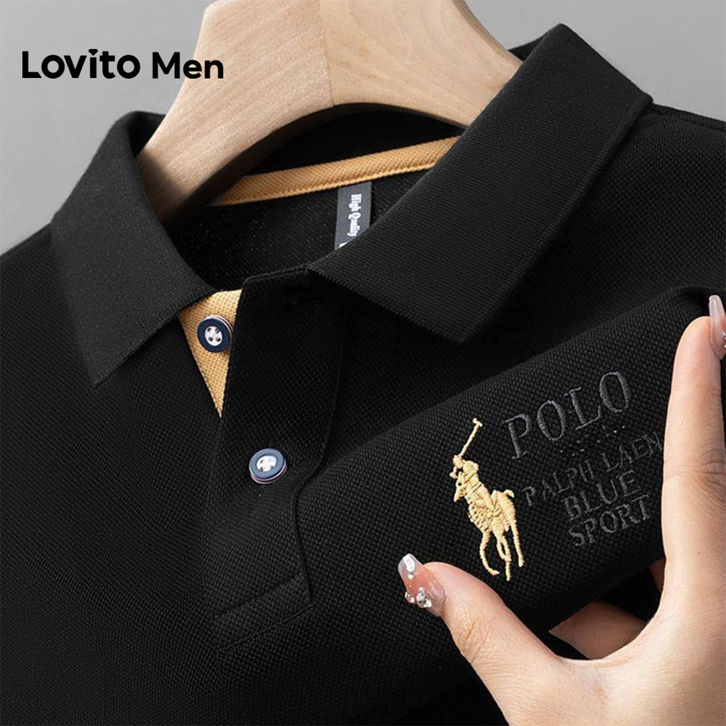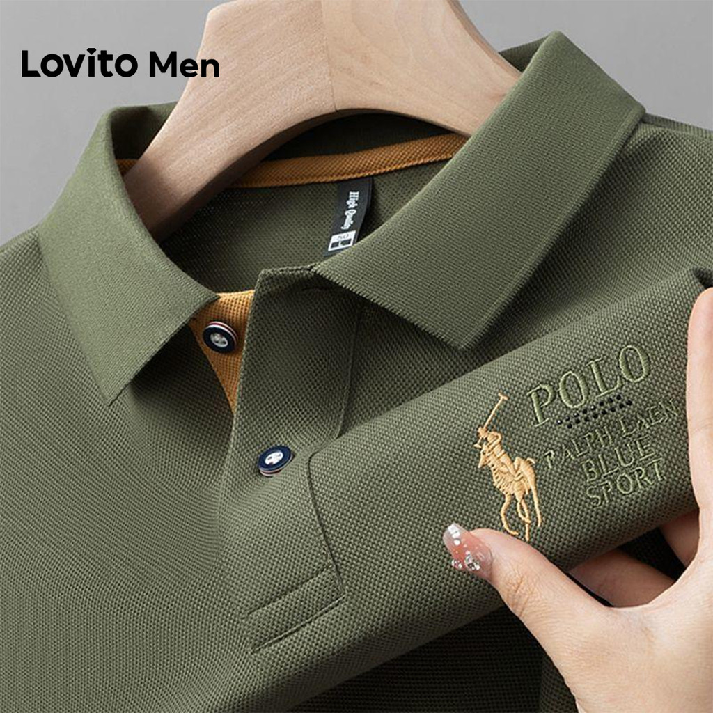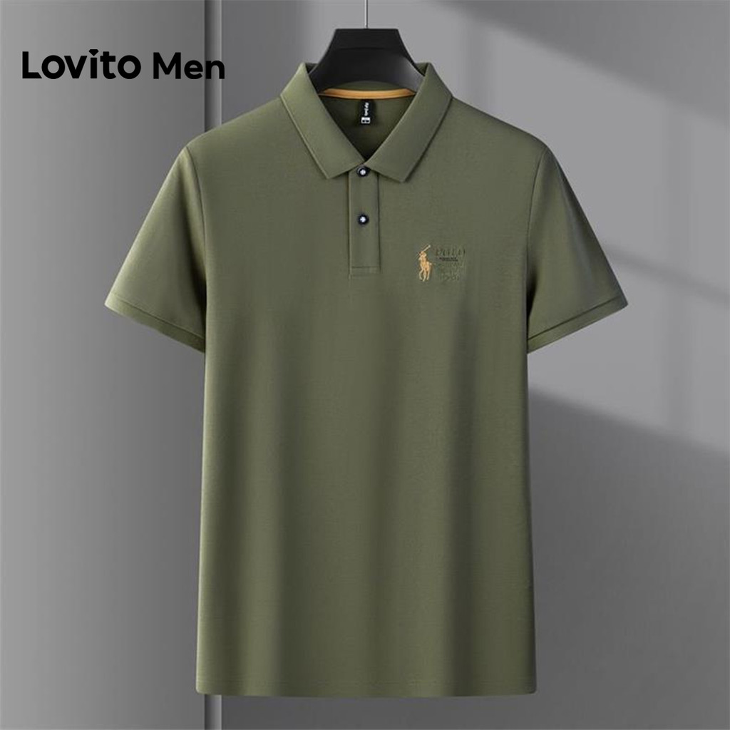 Lovito Men Camisa Polo Casual Bordada Primavera/verão Verde Camisa Polo para Homens LNE131066
