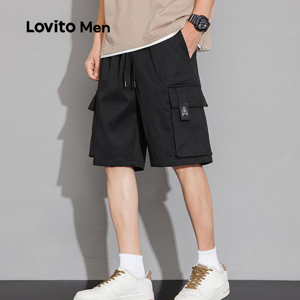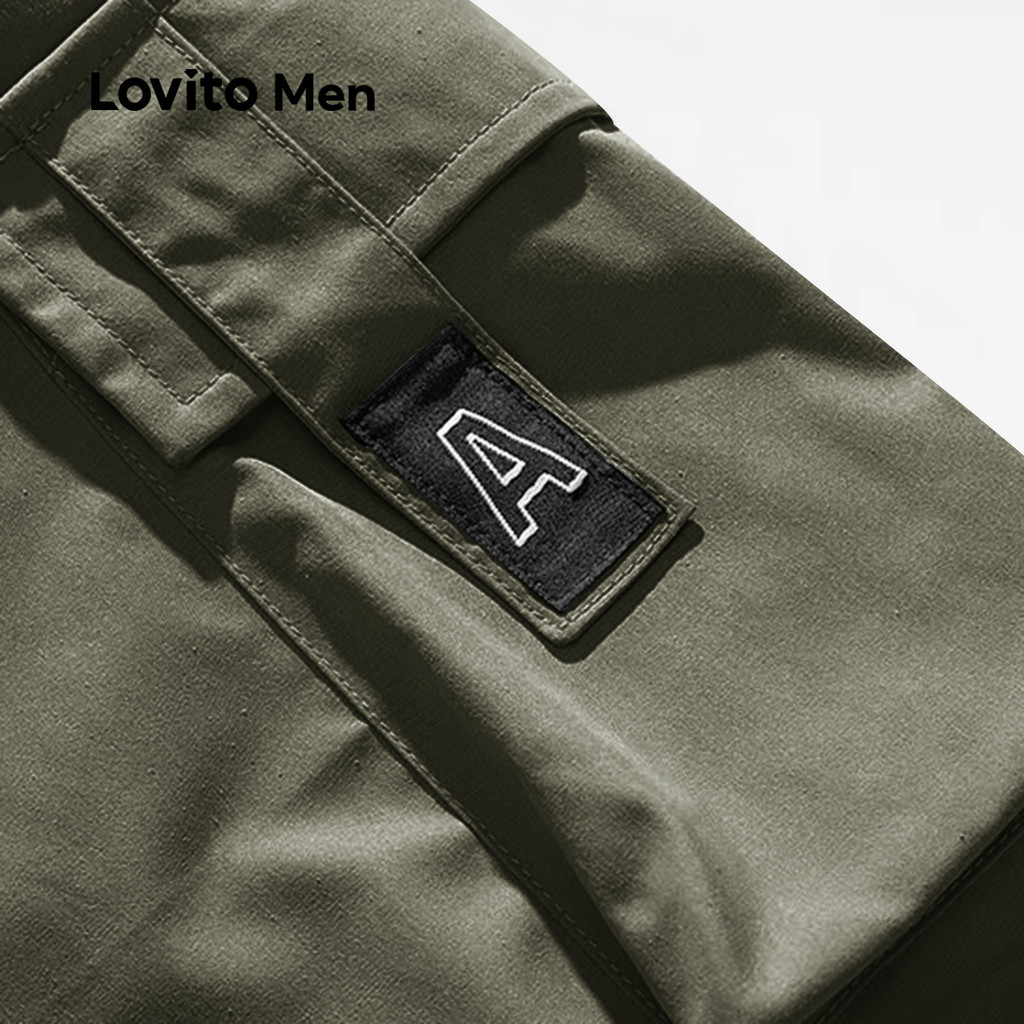 Lovito Men Shorts Casuais com Bolso Primavera/verão Verde Militar para Homens LNE122150