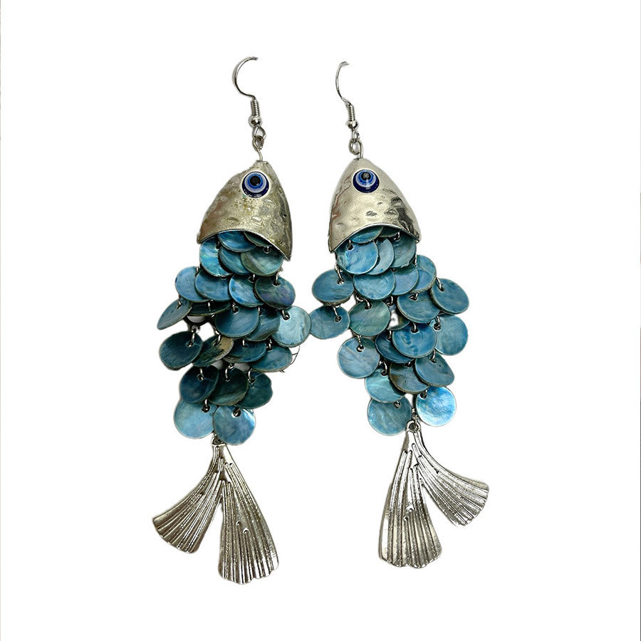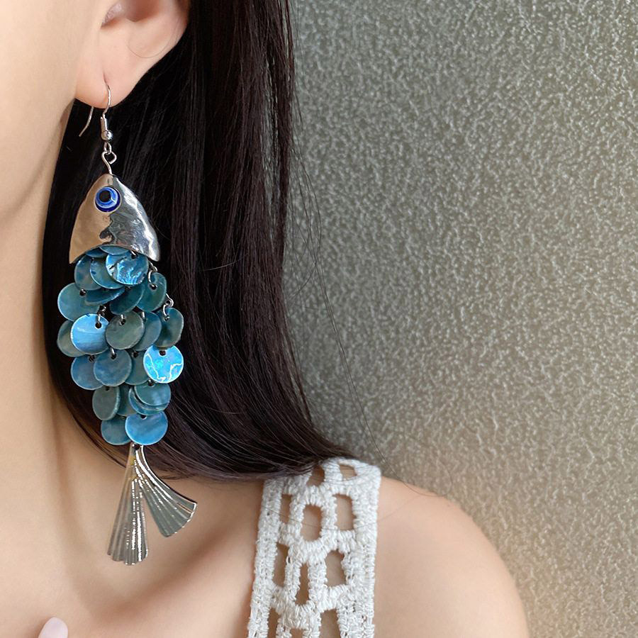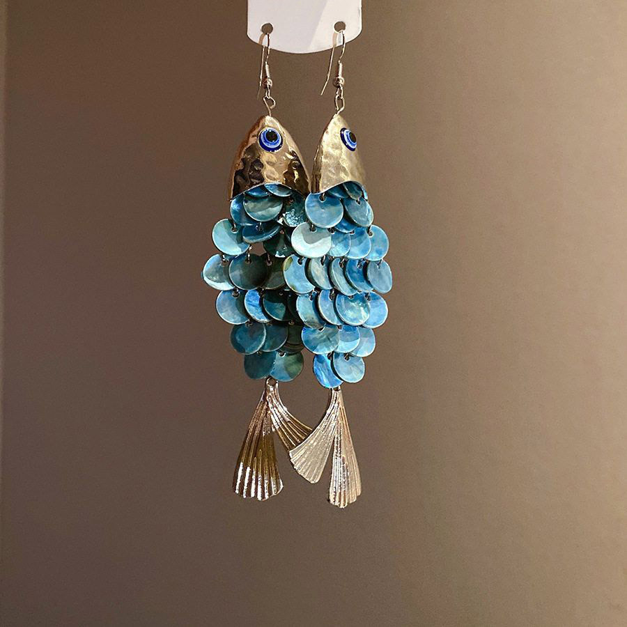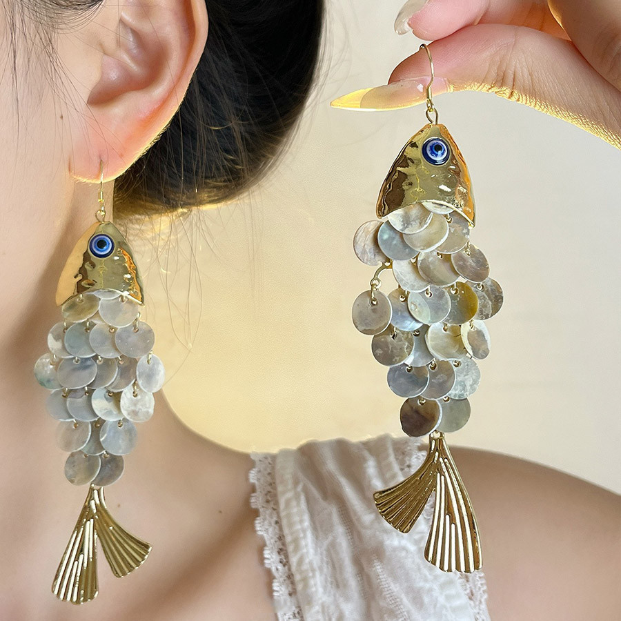 Novo produto transfronteiriço Retro em forma de peixe exagerado feminino geométrico High-End brincos borla ganchos de or