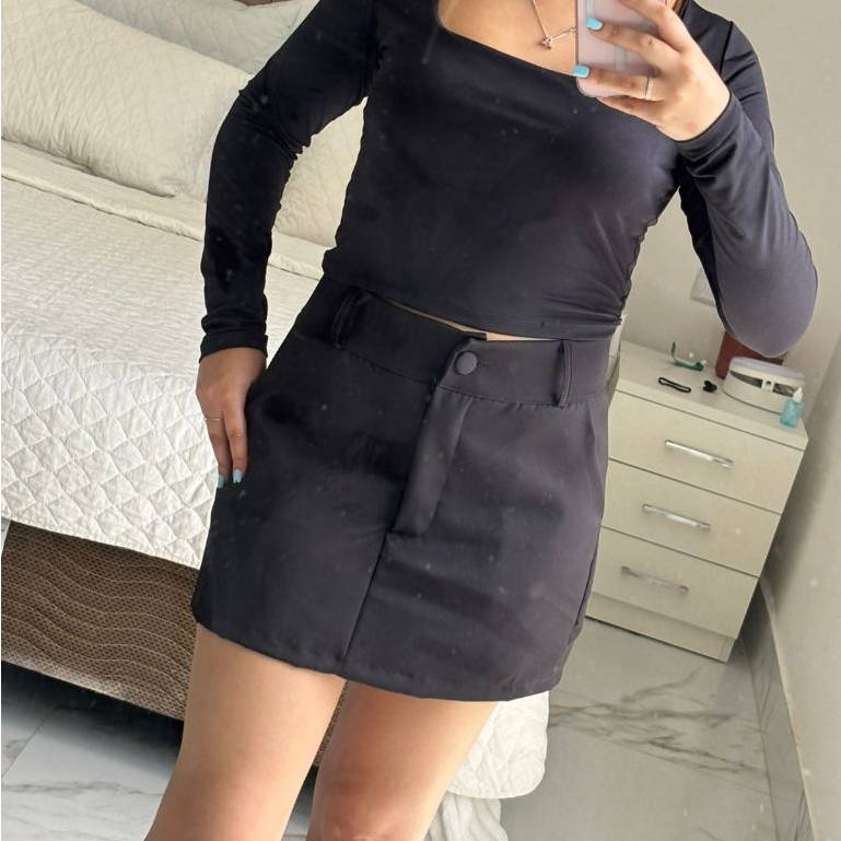 Short Saia em Alfaiataria Plus Size Feminina – Look Moderno, Confortável e Sofisticado com Botão