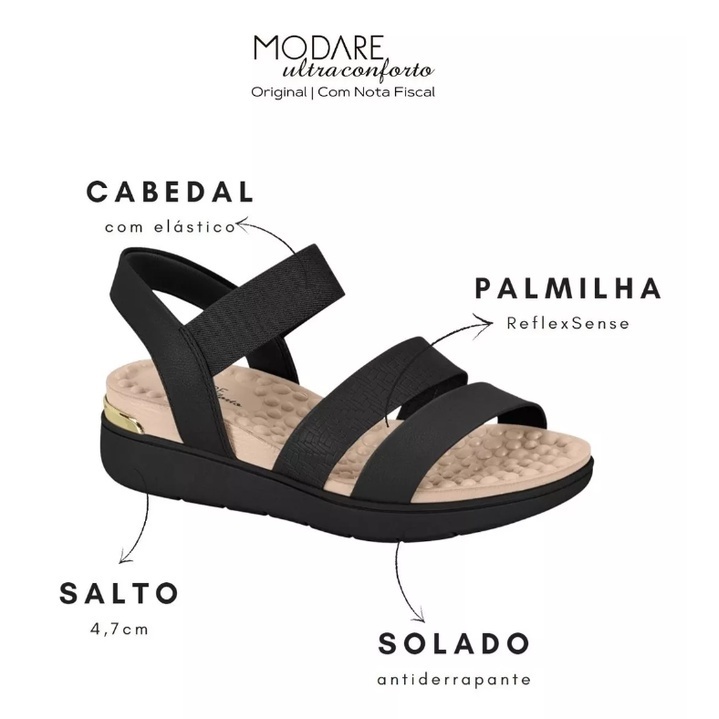 Sandália Modare Ultraconforto Feminina Salto Anabela Ortopédico Tamanco Esporão Original Ortopédica