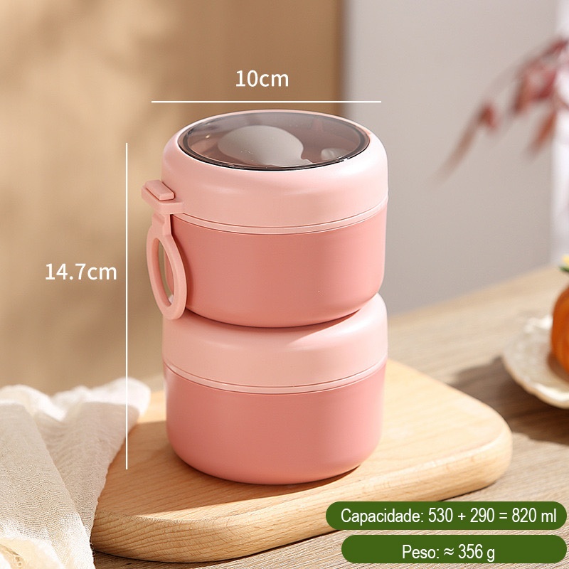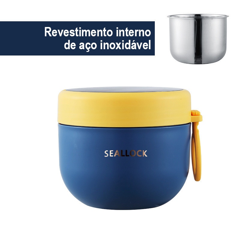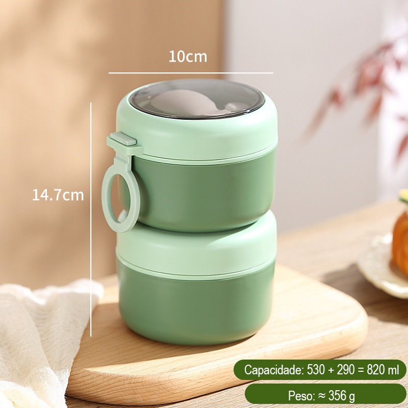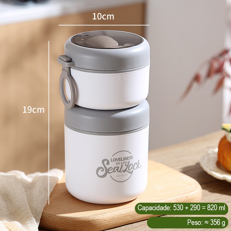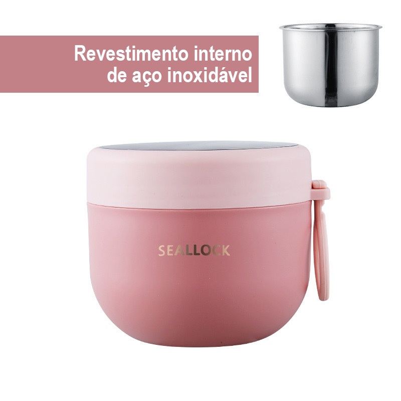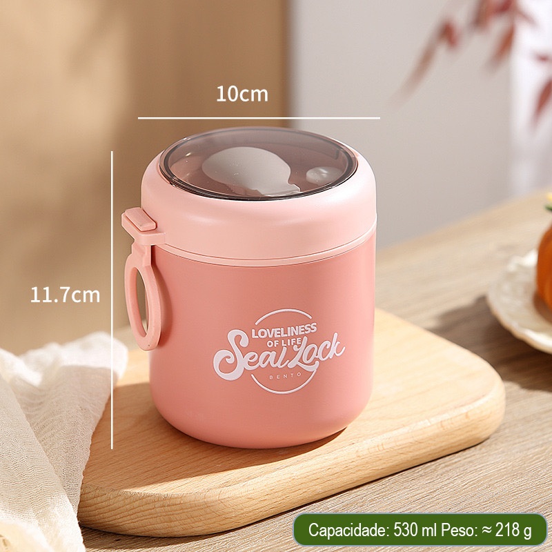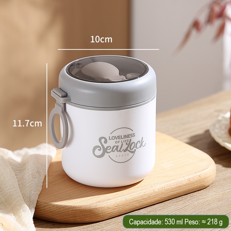 Marmita Térmica Aço Inox 304 com Colher 290ml, 530ml e 600ml, 1 Peça ou Kit 2 e 3 Peças, Vedação