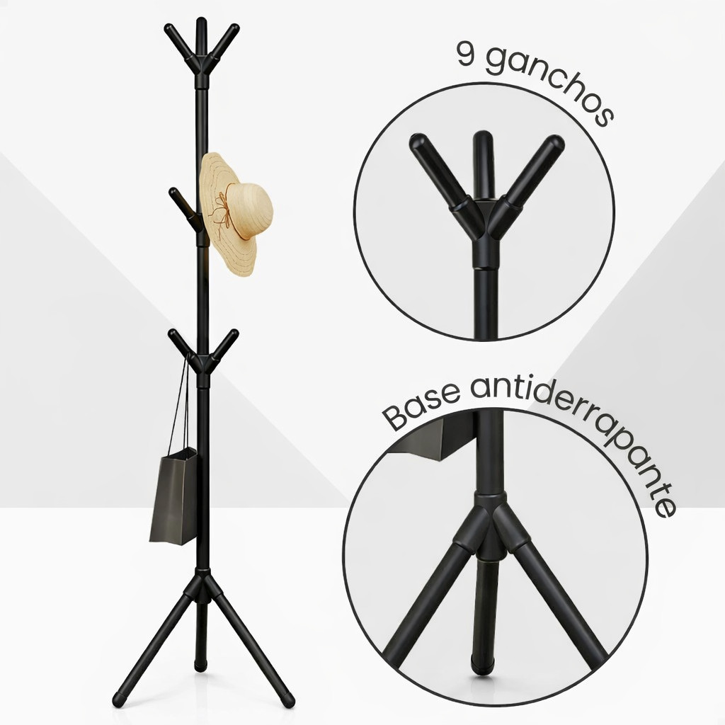 Cabideiro de Chão Organizador com 9 Ganchos Aço Resistente e Alta Estabilidade