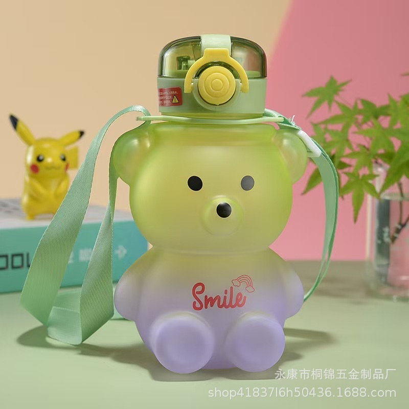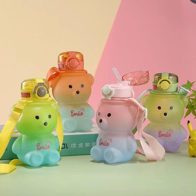 Kit garrafa infantil ursinho 1400ml + 350ml com canudo e alça – bpa free escolar gradiente