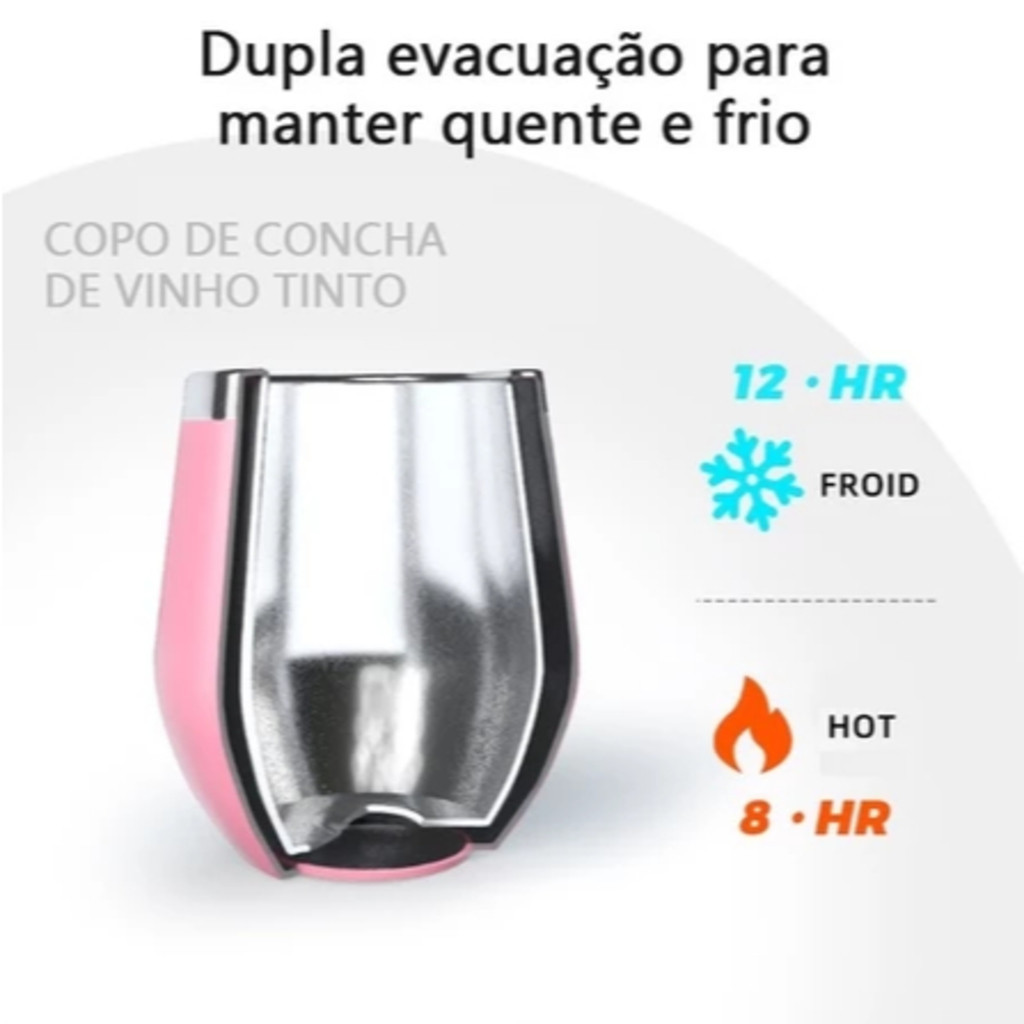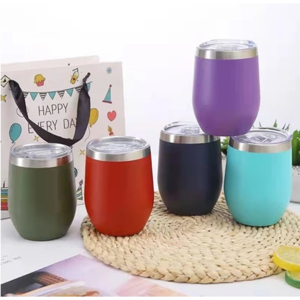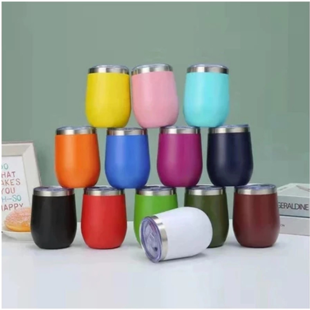 kit com 5/10 Copos Térmico 350ML Inox Com Tampa Acrílica Varias Cores-LC