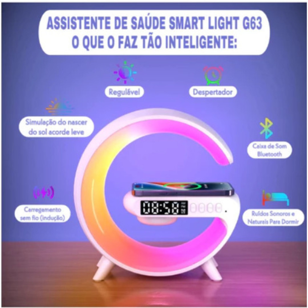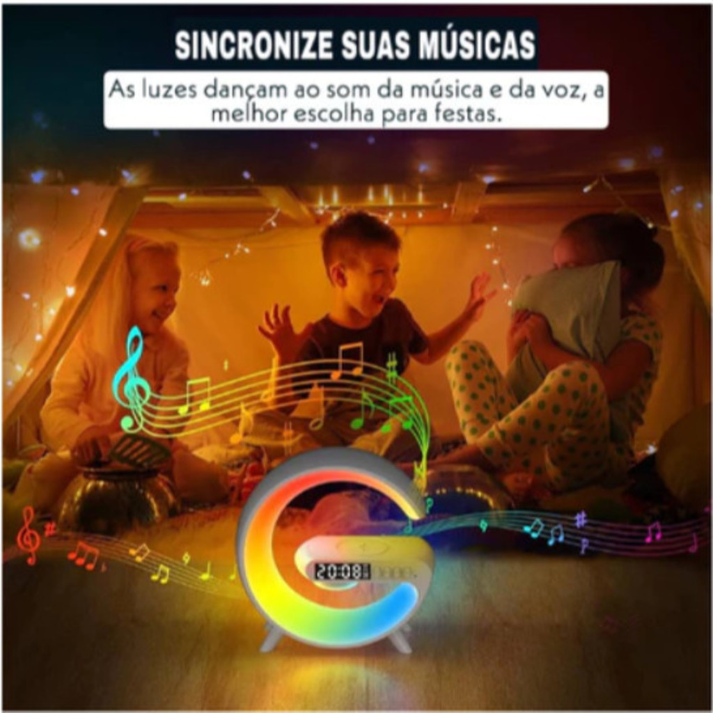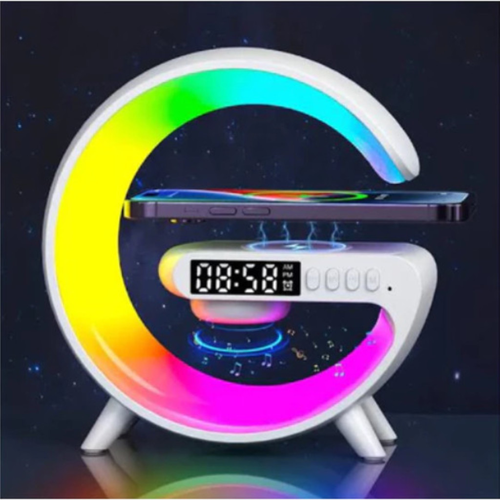 Caxinha de Som G -Speaker COR BRANCA Com Relógio Luminária Bluetooth Inteligente Carregador Sem Fio Led Luz Rgb-LC