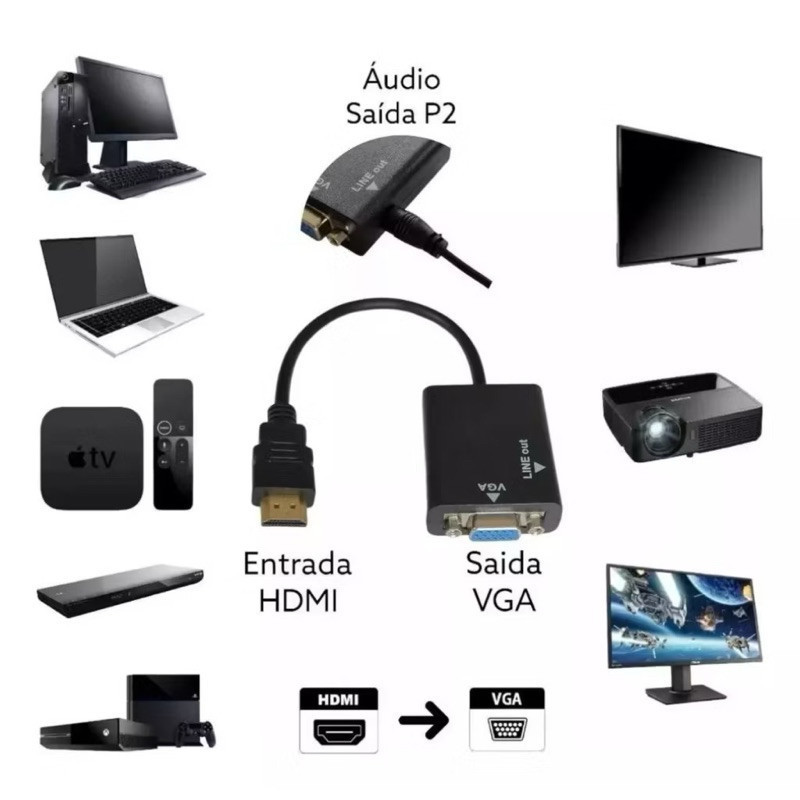 Cabo Conversor Adaptador Hdmi Para Vga Com Saída P2 Áudio-LC