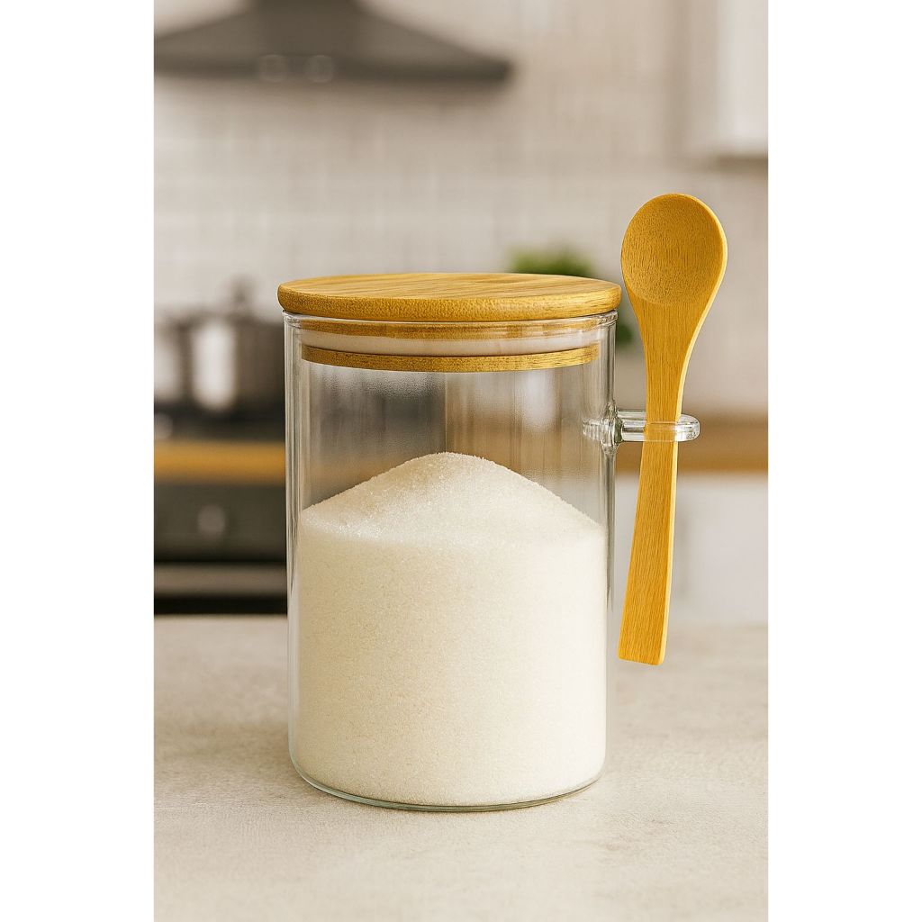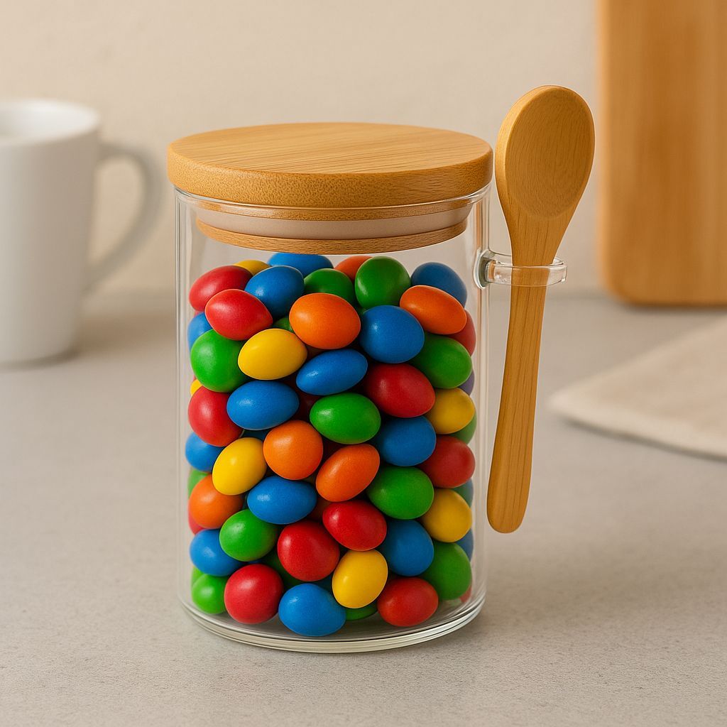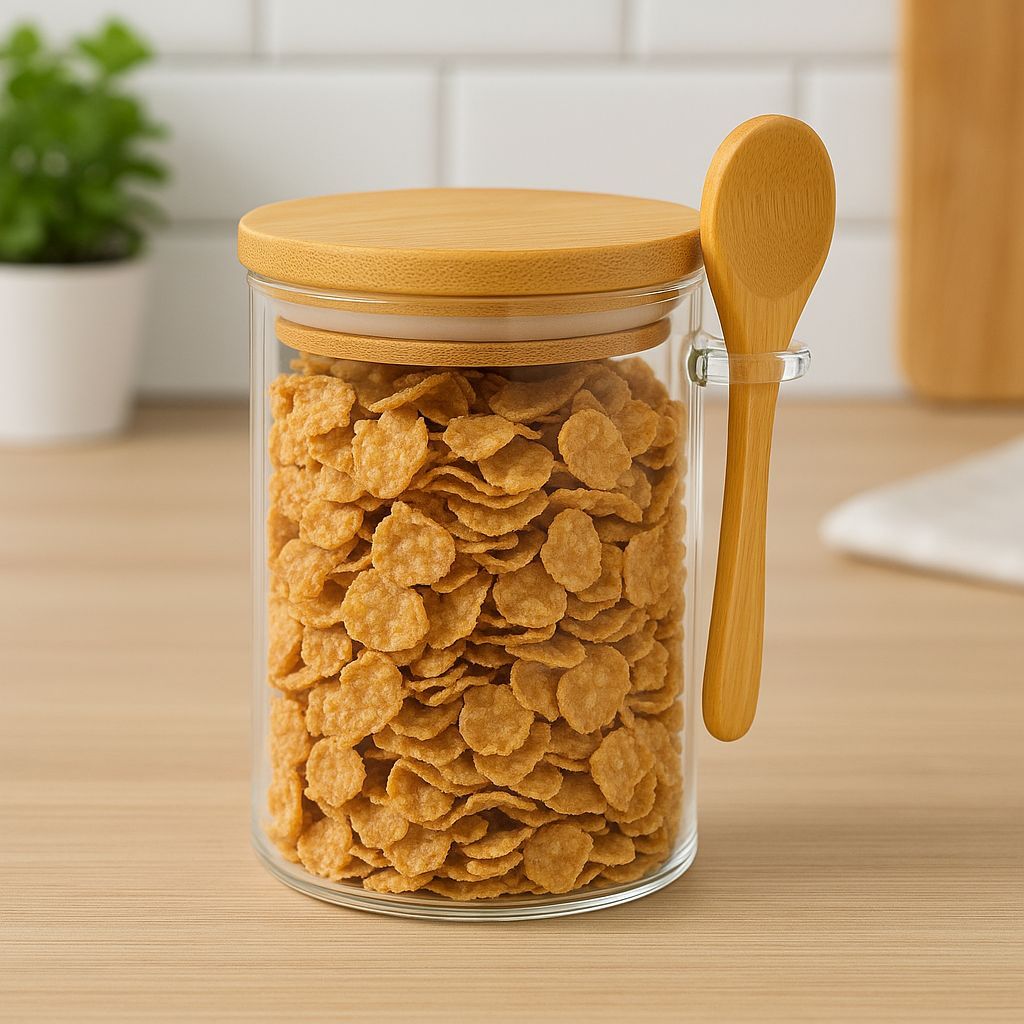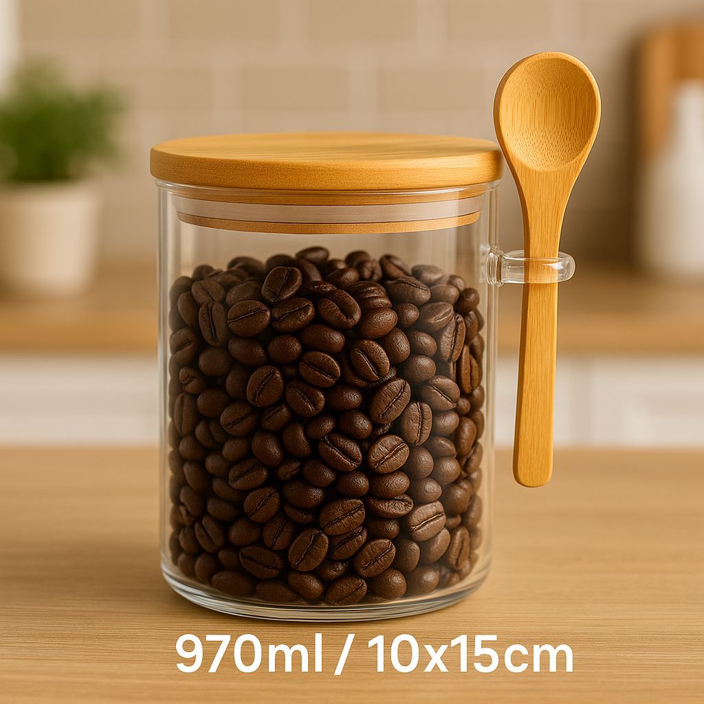 Pote De Vidro Redondo + Colher E Tampa Hermética Bambu 440ml 550ml 750ml 970ml kits