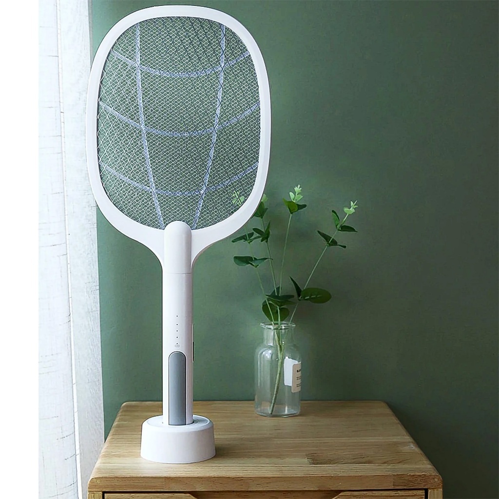 Raquete Mata Mosquito Recarregável Com Suporte De Mesa Casa Cor Branco