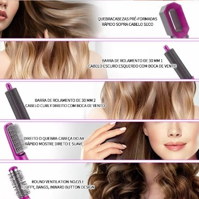 Escova Secadora De Cabelo 5 Em 1 Profissional Modeladora Unique Pente de Ar Quente