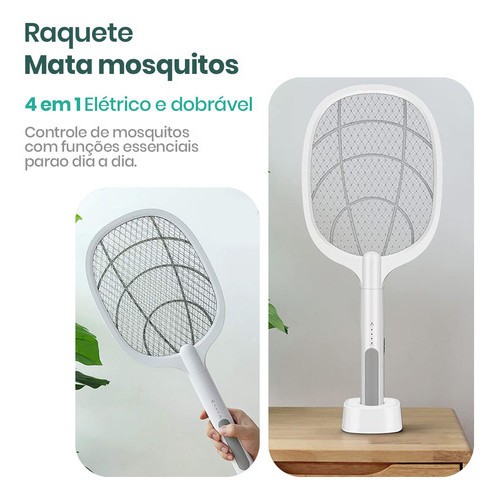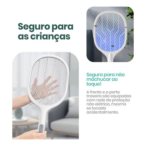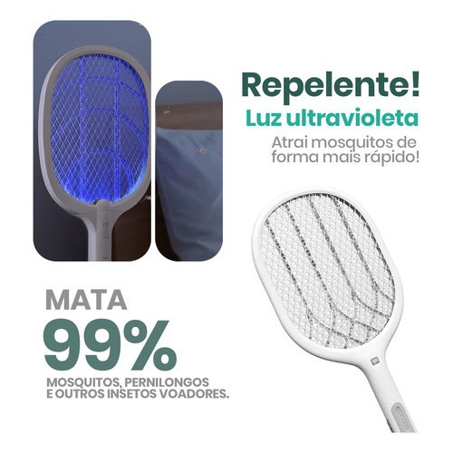 Raquete Elétrica Led Mata Insetos Recarregável Usb Armadilha Uv Luz Roxa