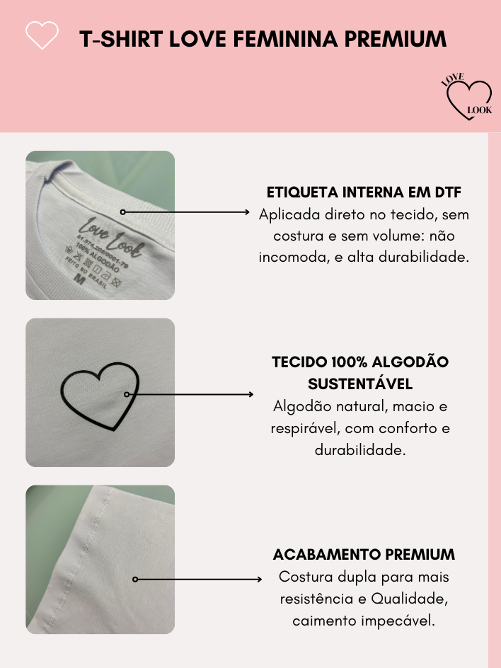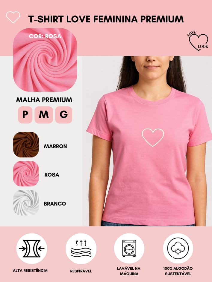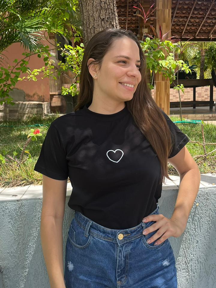 Camiseta Feminina Blusinha Camisa Básica Tendência Coração Minimalista Premium 100% Algodão