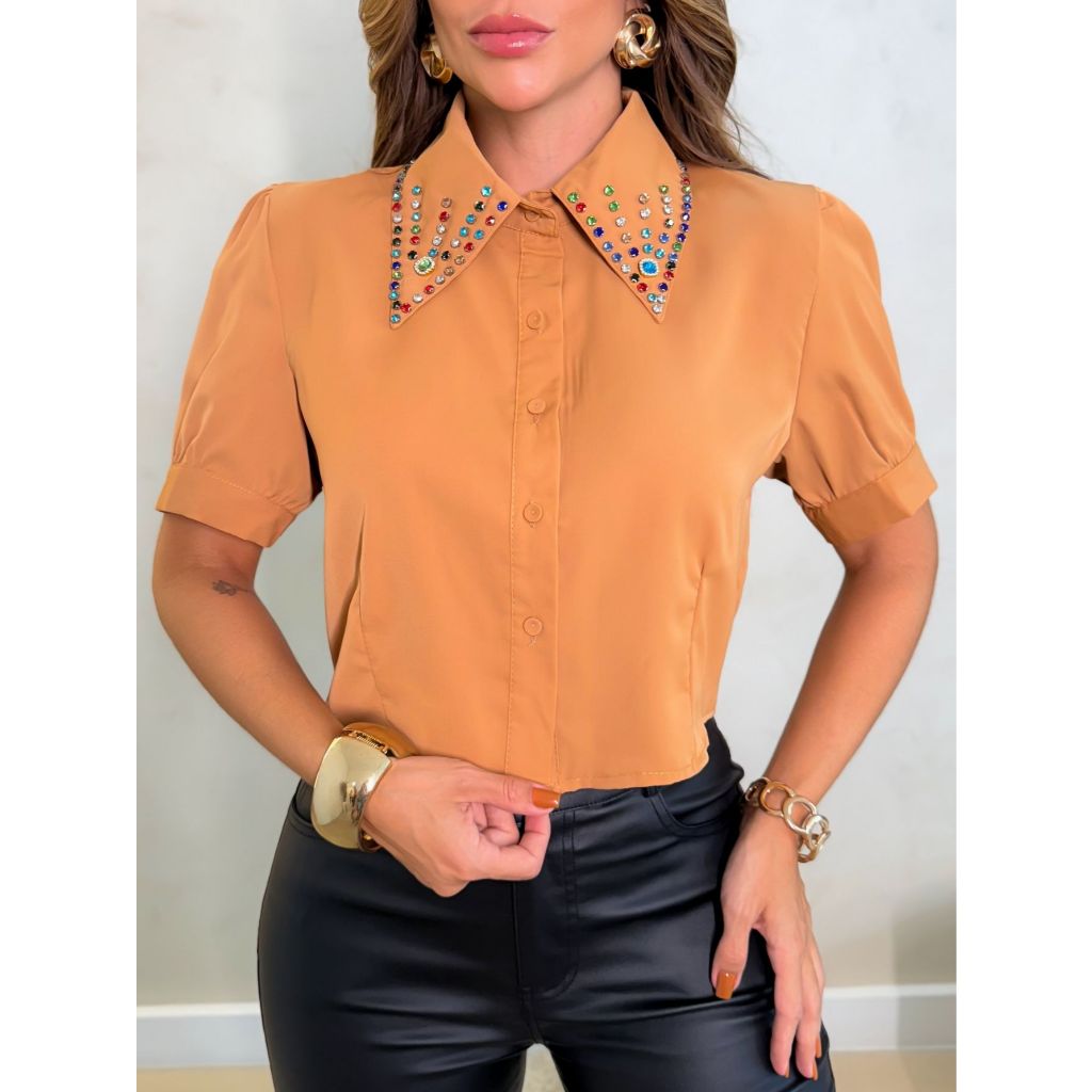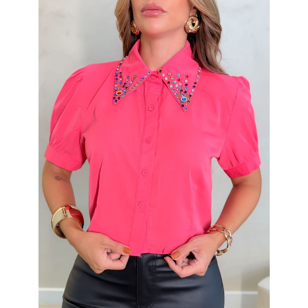 Cropeed De Manga Com Gola Em Pedraria (DR636)